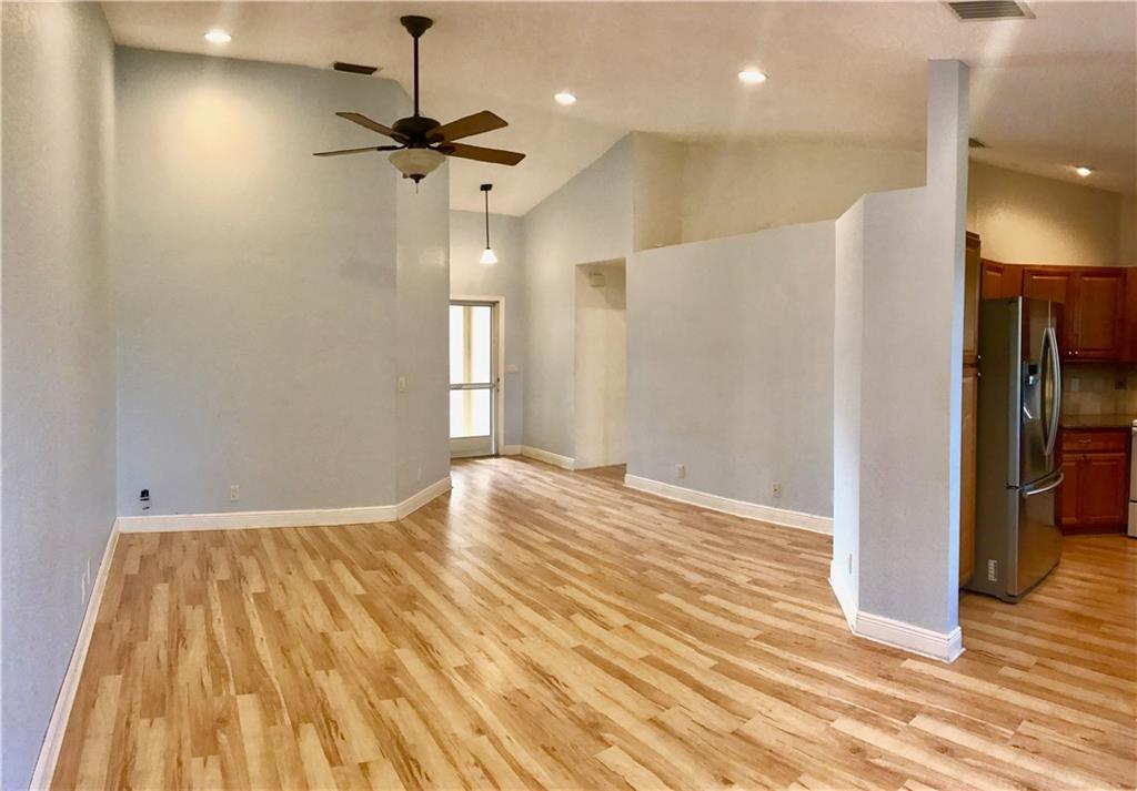 BACK ON THE MARKET! Beautiful and spacious waterfront 2 Bedroom, 2 Bathroom home located in desirable Pine Island Bay. This is a friendly community with easy access to recreational parks, highways, shopping, dining and more! Very large fenced in backyard with WATER VIEWS and porch for entertaining. Recessed lighting, vaulted ceilings, updated bathrooms, kitchen and floors, pet friendly community. Easy to Show!