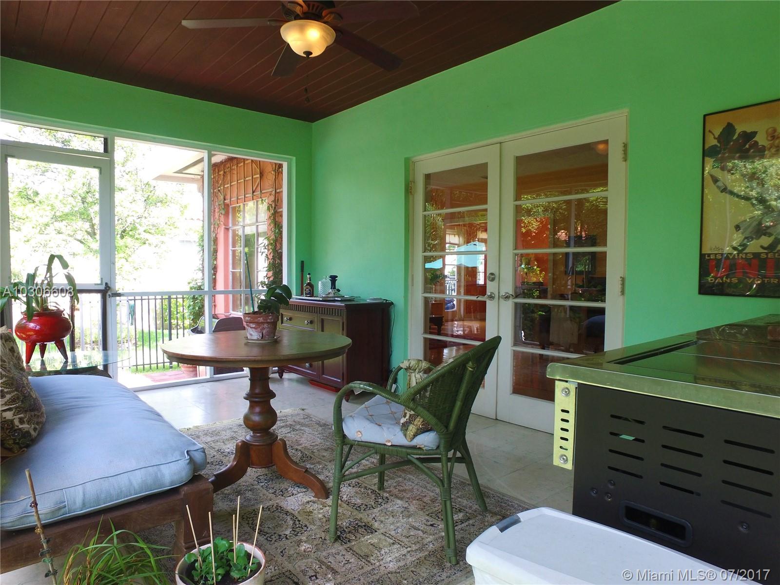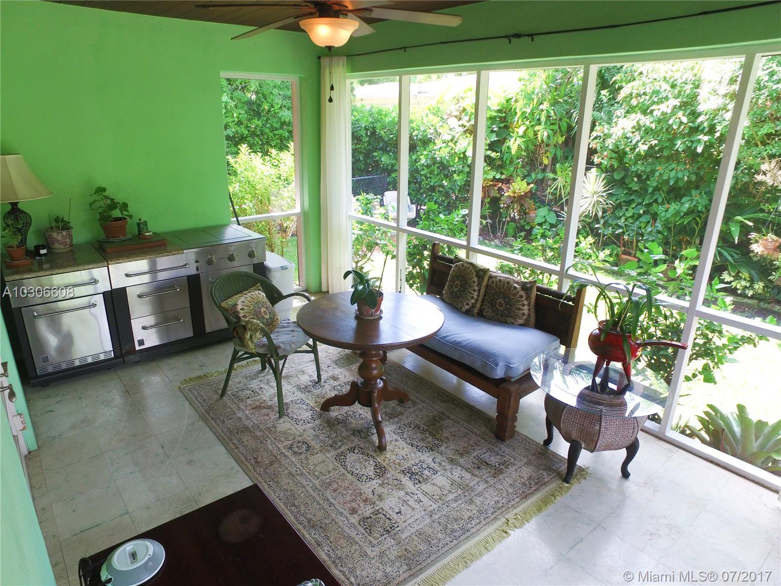 Charming home on tree lined central Coral Gables street. Attractive curb appeal. Close to free trolley& metro mover,restaurants shopping library& recreation center all near by. Beautiful hardwood floors throughout. A large sunny master bedroom and over looking garden second bedroom also facing the trees in front.. bright Updated kitchen w/breakfast nook & a window over the sink. Hi-ceilings, open flowing floor plan. A wonderful screened in rear porch with a built in summer kitchen overlooking lush yard perfect for gardening or a pet to roam freely. A brick patio with Table & chairs & umbrella great for entertaining . A spacious garage with extra storage. Coconut Grove & University of Miami near by. Walk to Merrick park for upscale shopping Movies & fine dining.