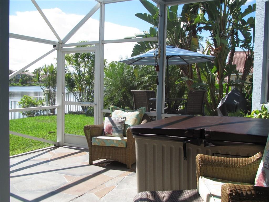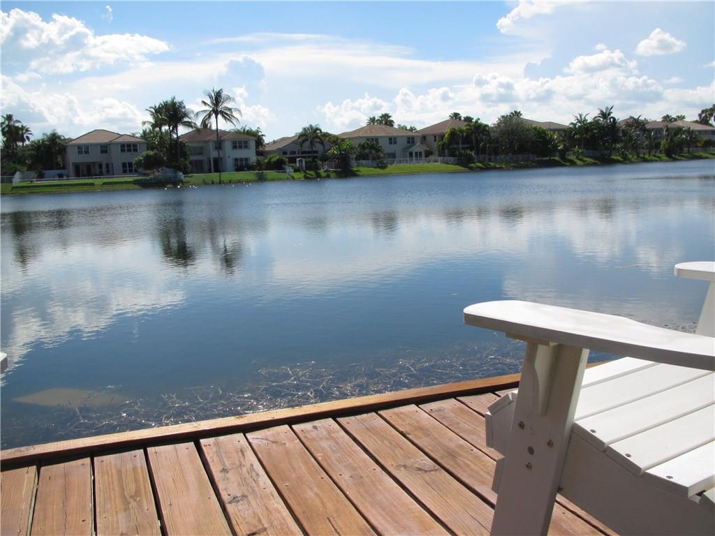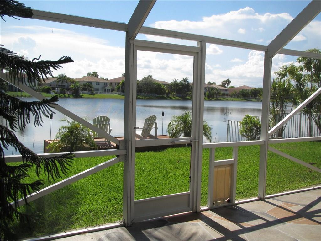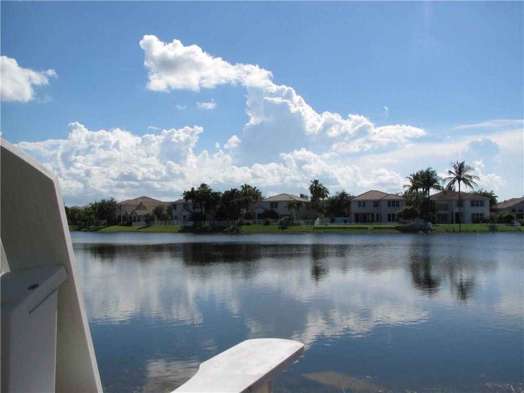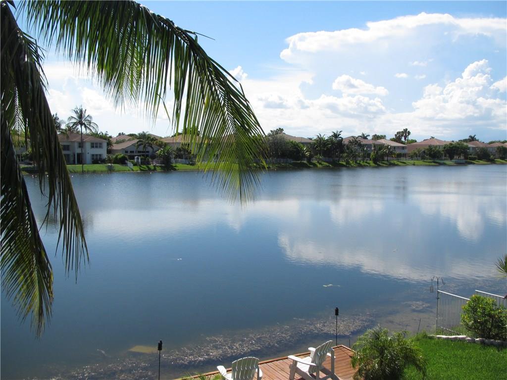 Incredible Lakefront four bedroom home. Volume ceilings throughout main floor-wonderful views from the kitchen and family room- one bedroom and bathroom downstairs. Spacious rooms. Screened patio off the family room. Master bedroom with sitting area and two master bathrooms and closet space with French doors out to the balcony for tranquil views. Two other bedrooms upstairs with Jack and Jill bathroom. Community pool and play ground and outdoor exercise area. Guard Gated. Do not delay - call today