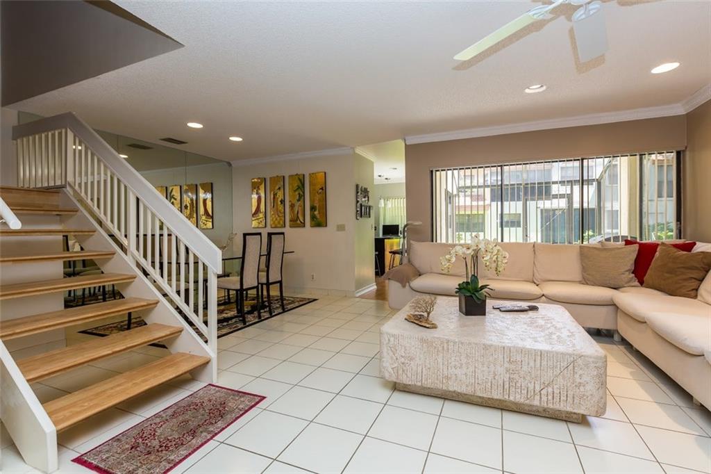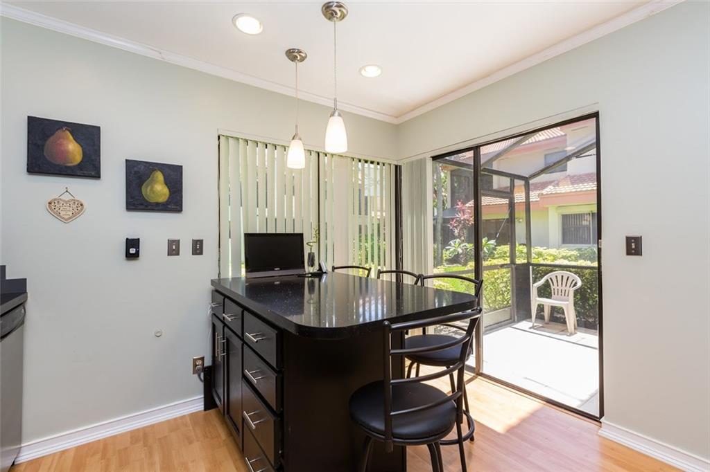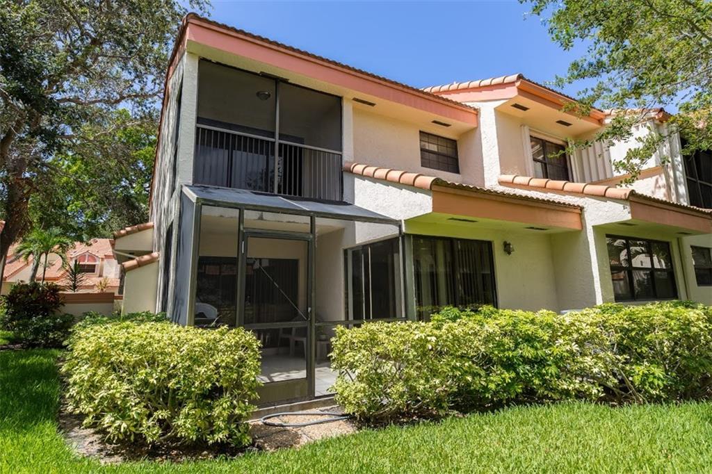 REDUCED -owner wants offers. Largest corner 3/2.5 model. One bedroom and 1/2 bath first floor. Washer/dryer in unit. Remodeled updated kitchen opens to wonderful screened patio. Laminate throughout including the stairway that leads to spacious master with walk in closet, vaulted ceilings, balcony. Large bathroom -dual sinks. Second bedroom and full bathroom plus open loft used as an office. Low Maintenance, secured community with pool. Heart of Emerald Hills walk to park and shops/restaurants.