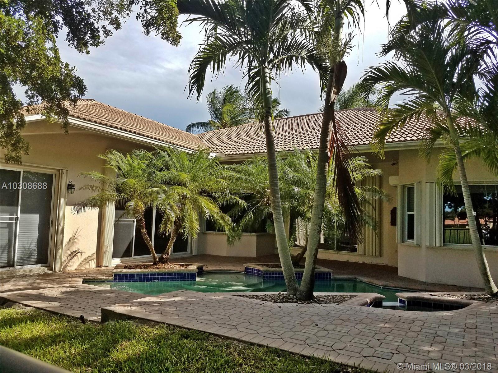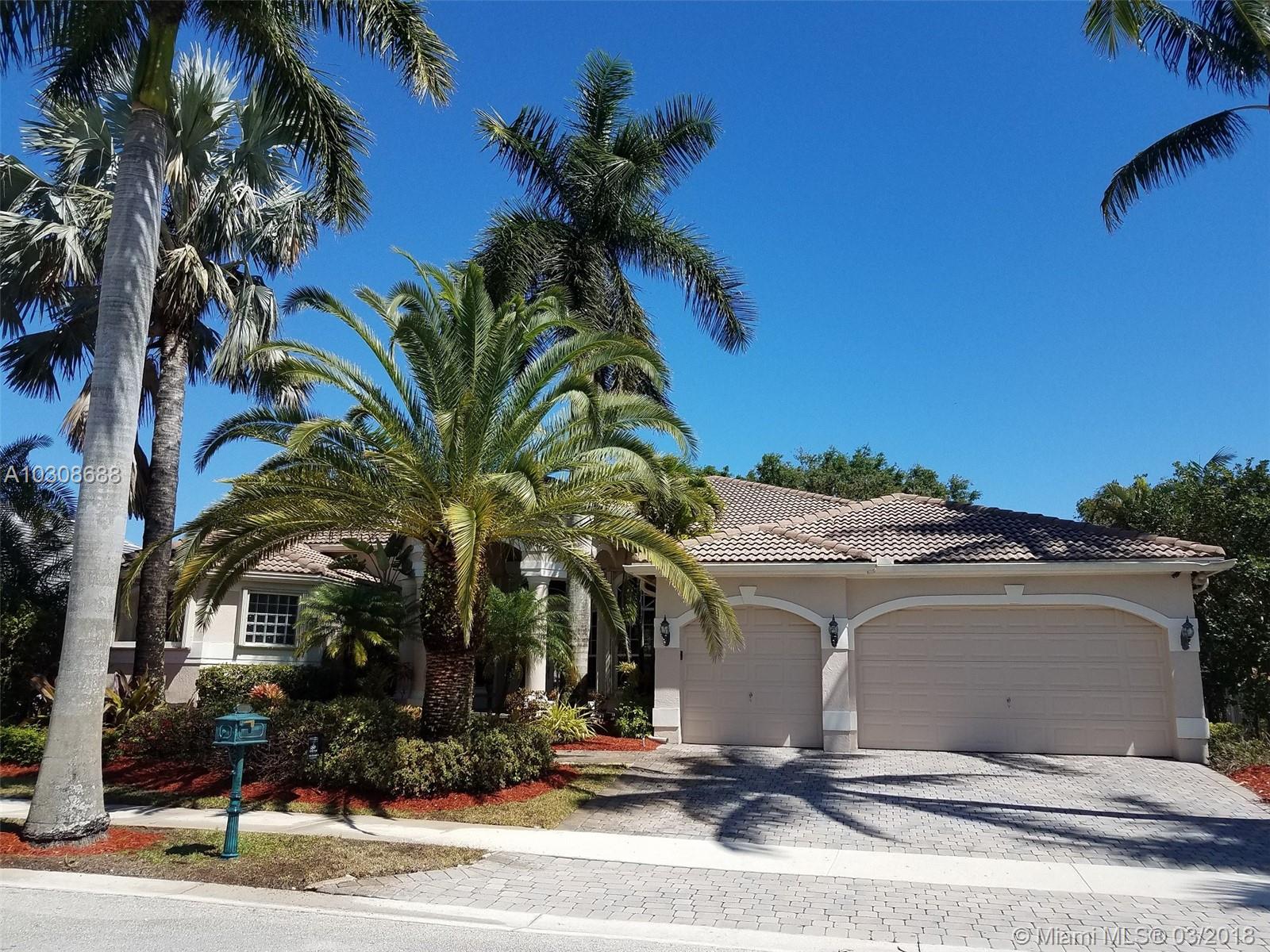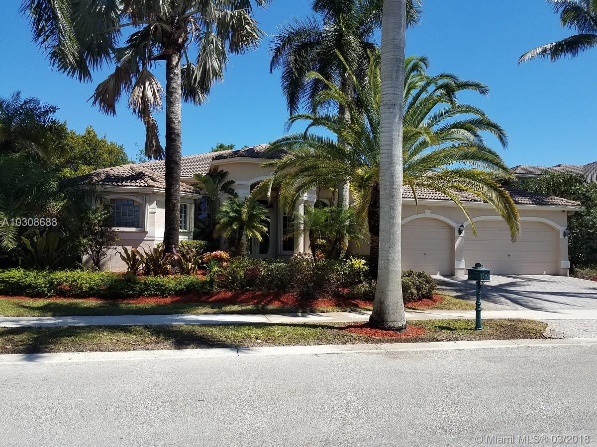 Golf course beauty located in the Montclaire community with 53 homes in the Prestigious Weston Hills Country Club. Estate features an expanded 3 way split open floorplan with 5 bedrooms, 4 & 1/2 baths PLUS an OFFICE & DEN! Gorgeous golf and pool views while relaxing in a perfect to entertain backyard. Upgraded kitchen with Stainless appliances, cooking island & granite. Office/den with built ins. Hardwood floors. Interior just painted. Office with brand new carpet. Accordion shutters for HURRICANE PROTECTION. Near schools, parks, shopping, hospitals & expressways.