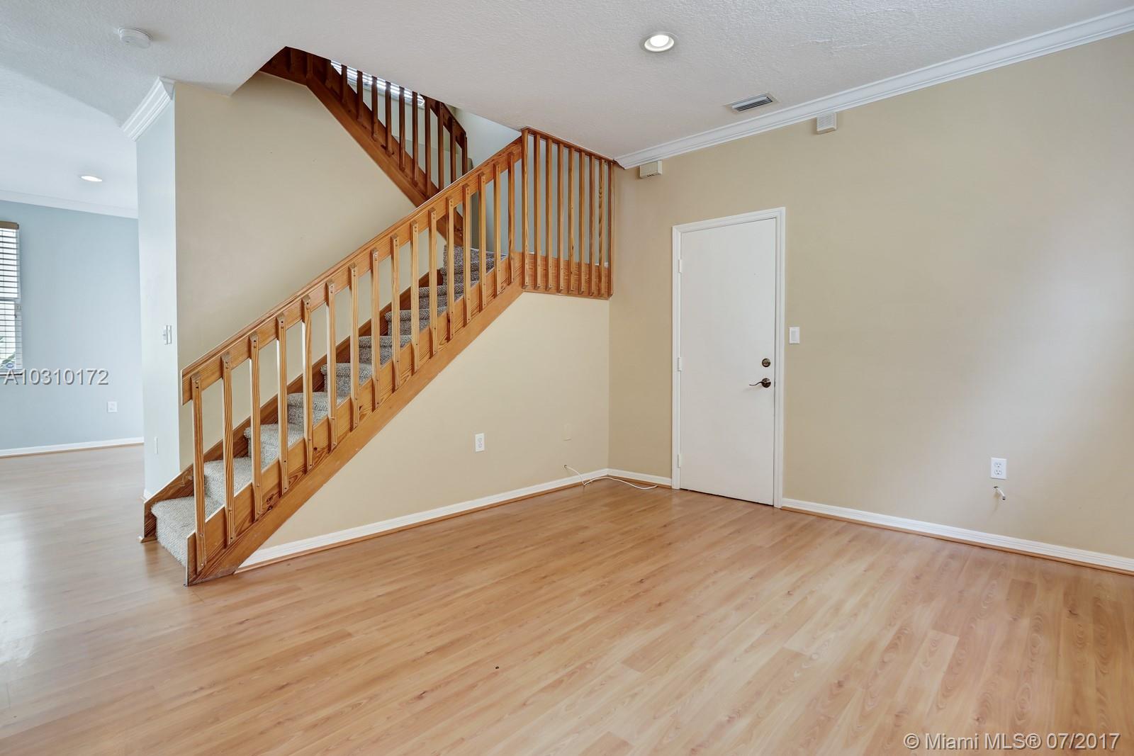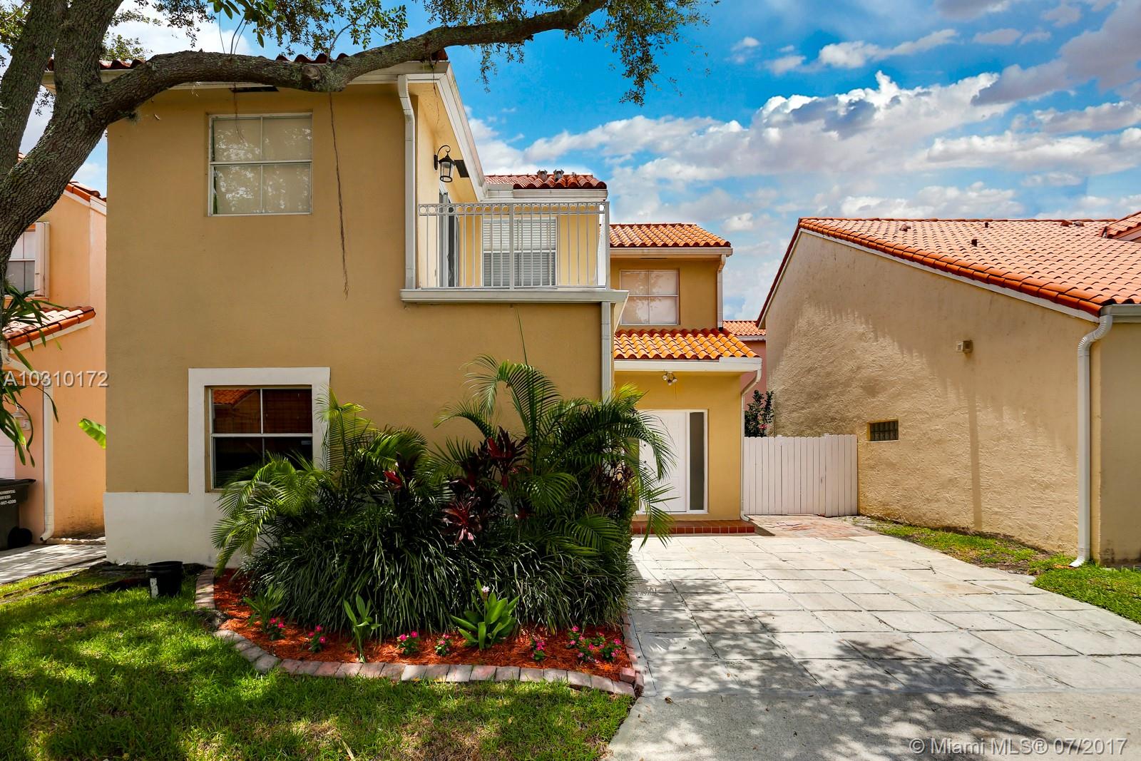 Bright and beautiful, this Capri model is flooded with natural light and a spacious, open floor plan. 3 bed 2.5 bath, with the bedrooms on the 2nd floor. Huge master bedroom suite will accommodate lots of large furniture and a sitting area. The laundry is conveniently located adjacent to the bedrooms, with the front bedroom featuring a lovely open balcony. Attractive, care-free laminate flooring throughout the living and dining rooms, and kitchen/family room. Eat-in Kitchen with quartz counters, SS appliances, tons of counter space, will delight any chef. Private, fenced yard with mature landscaping, garage has been made into a room, great for a man-cave or children's playroom. This house is steps to the community pool and extra guest parking. Priced to sell, this one won't last.