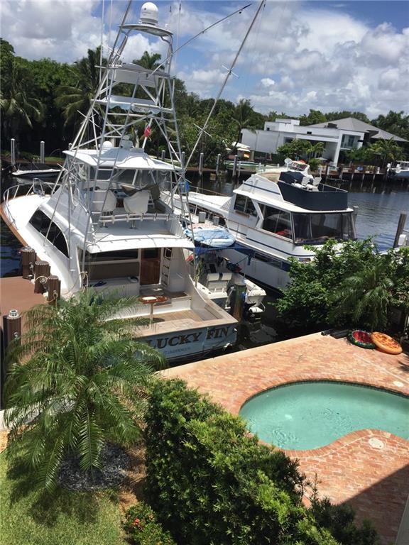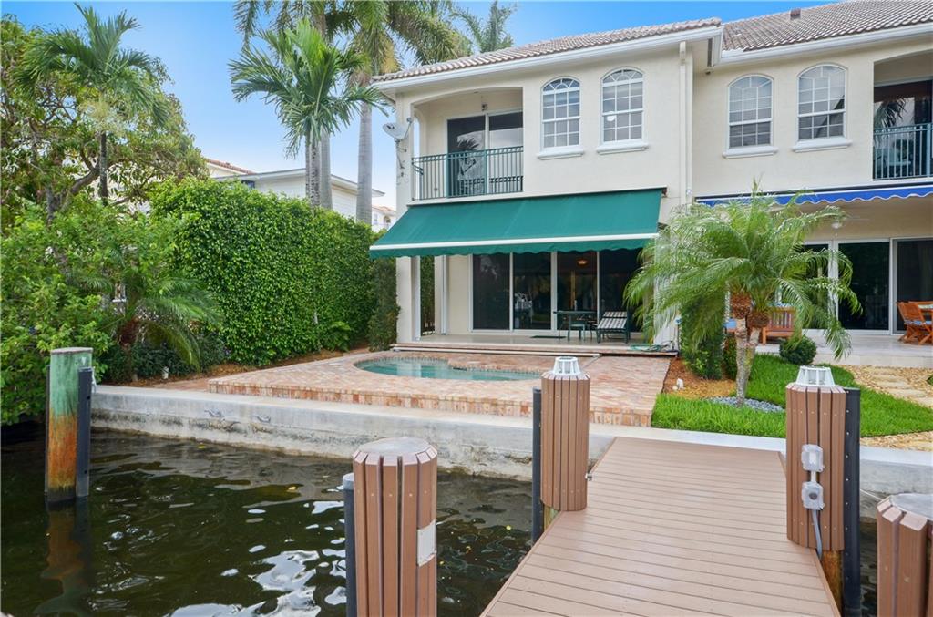 Gorgeous corner unit with private pool and ocean access in the heart of Las Olas. Double wide boat slip has dockage for 45" vessel, no fixed bridges, and dock features 50 amp electric. This townhouse sports two car garage, high impact windows, and security system. Pool deck is extra large, and features a SunSetter retractable awning to keep you cool in the afternoon. Brand new pool pump. Huge master bathroom and master closet give this unit a comfortable feel. Walking distance to beach and Las Olas shops.