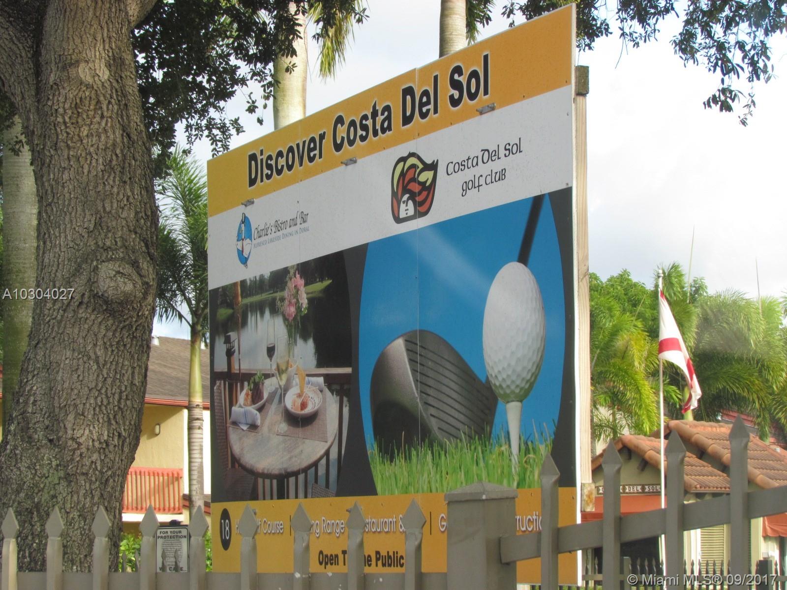 GREAT OPPORTUNITY!!! ONE OF A KIND 3 bed 2.5 bath, two-story Townhouse in COSTA DEL SOL. One of Doral's most desirable locations! Tastefully Remodeled Kitchen, Bathrooms and floors. Brand new Stainless steel appliances. Spacious bedrooms. Plenty of storage. HOA includes maintenance of exterior and roof, 24/7 security at Gate and Patrol, insurance for the exterior. Water, basic cable, landscaping. Community amenities include a restaurant, playground, swimming pool, tennis and basketball courts, Jogging-Bike Path and an 18 Hole Golf Course. Surrounded by scenic lakes and large trees. Close to A+ schools & major highways. Special assessment $25.00 a Month. Exterior is in the process of getting painted by the Association.
