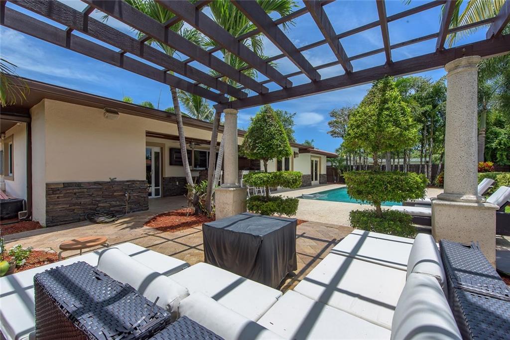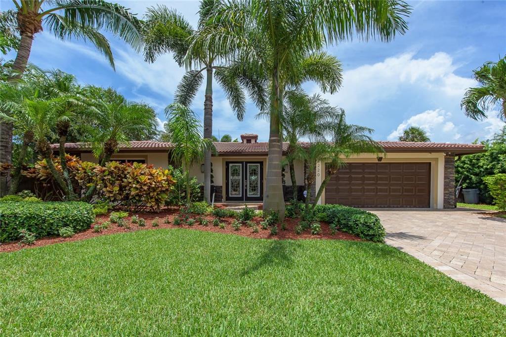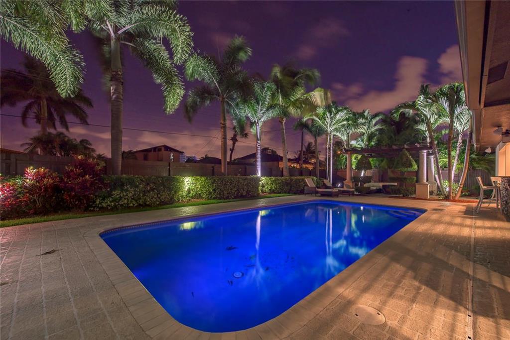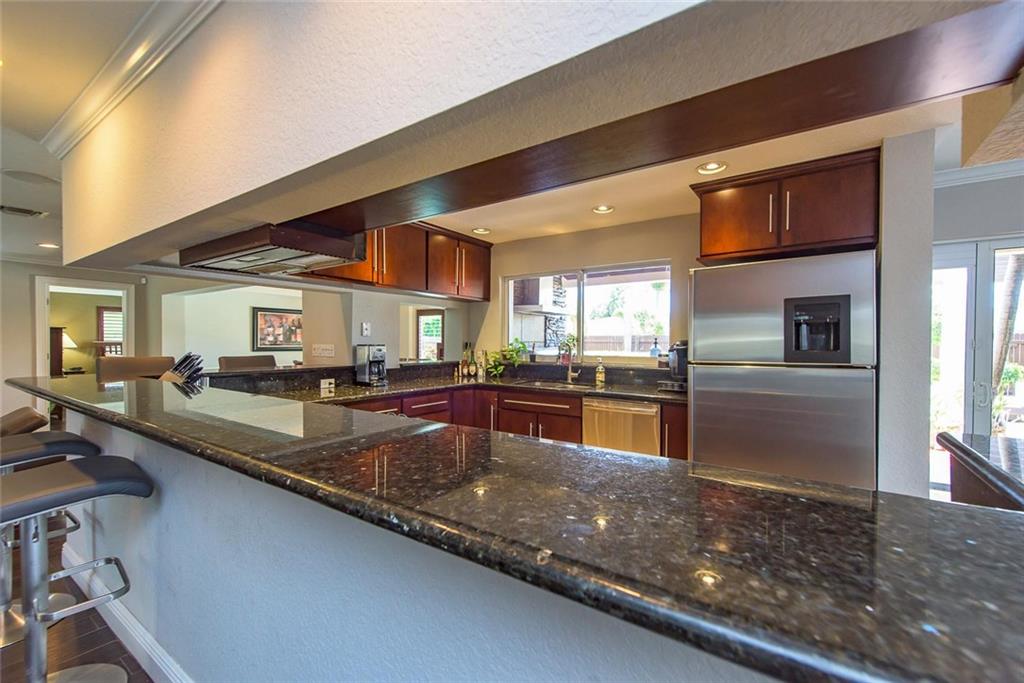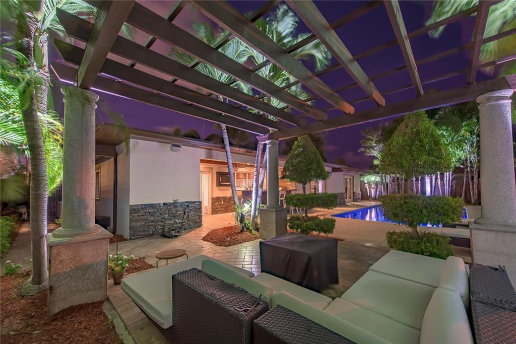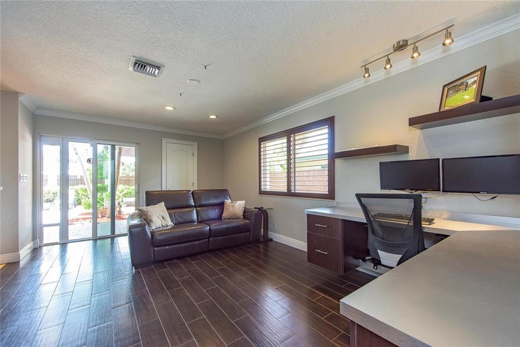 Reduced for immediate sale. Beautifully updated with a transitional feel, this home is South Florida living at it's finest. Featuring two bedrooms and three baths. Espresso colored tile floors throughout the home with an open and relaxing feel.The resort style backyard includes loads of palm trees and landscape lighting for nighttime entertaining. The kitchen is open to all the living areas including formal dining room, living room and family room/office. Super private, fully fenced backyard.