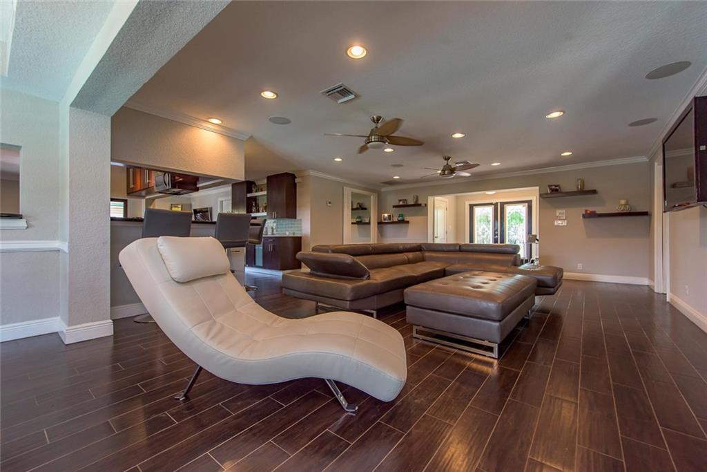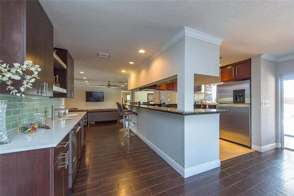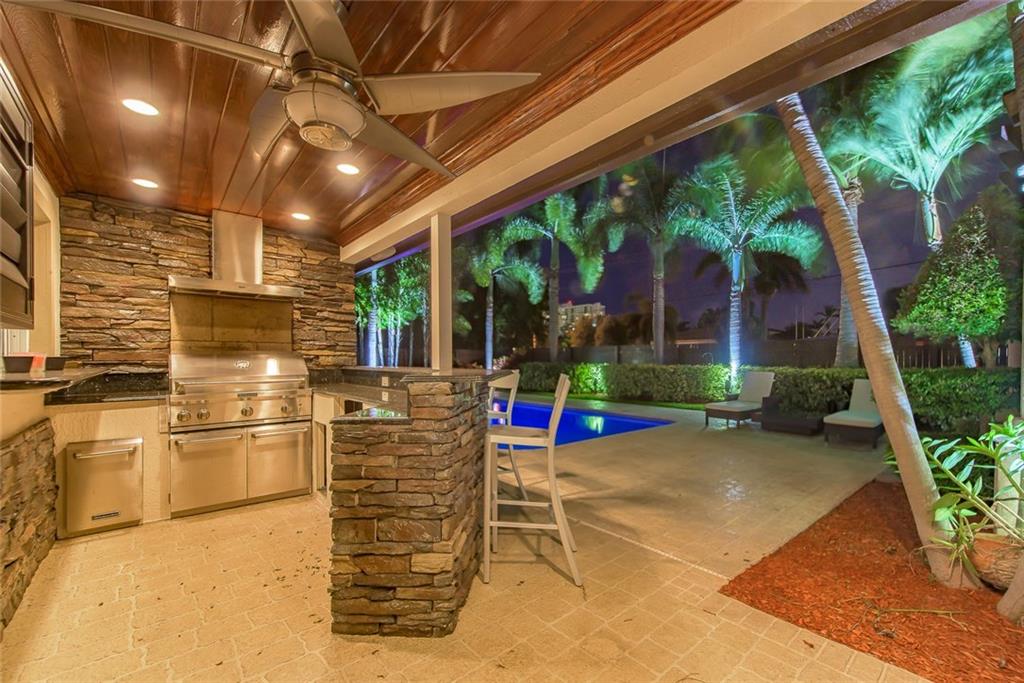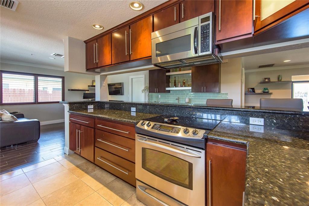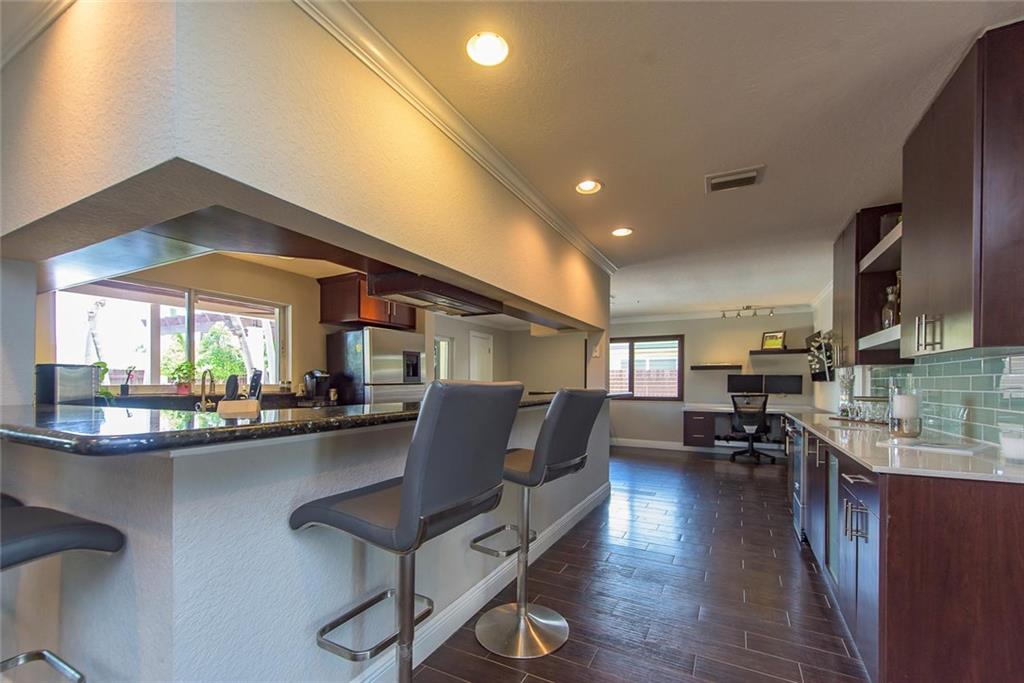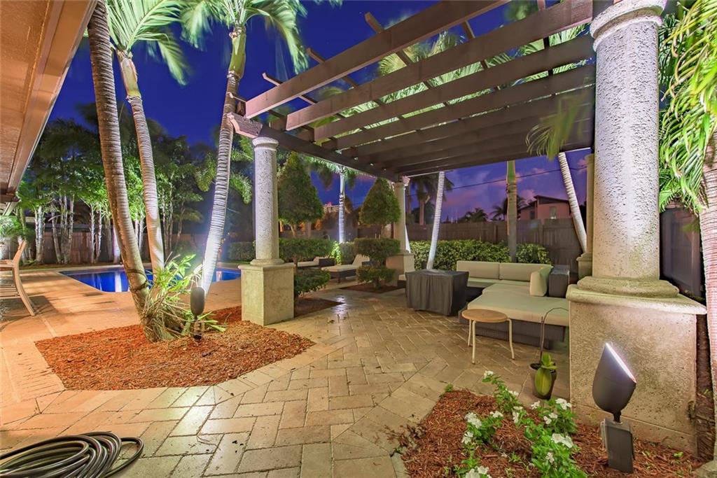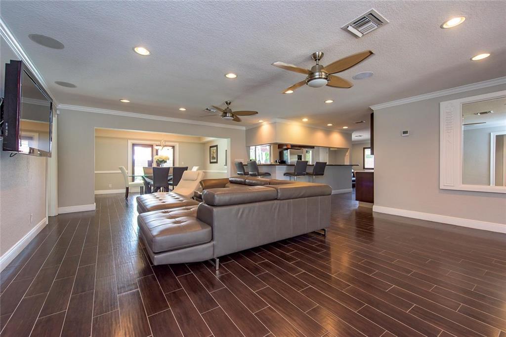 Reduced for immediate sale. Beautifully updated with a transitional feel, this home is South Florida living at it's finest. Featuring two bedrooms and three baths. Espresso colored tile floors throughout the home with an open and relaxing feel.The resort style backyard includes loads of palm trees and landscape lighting for nighttime entertaining. The kitchen is open to all the living areas including formal dining room, living room and family room/office. Super private, fully fenced backyard.
