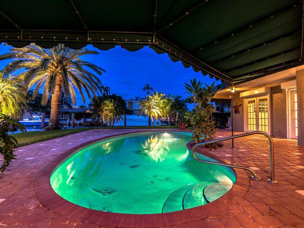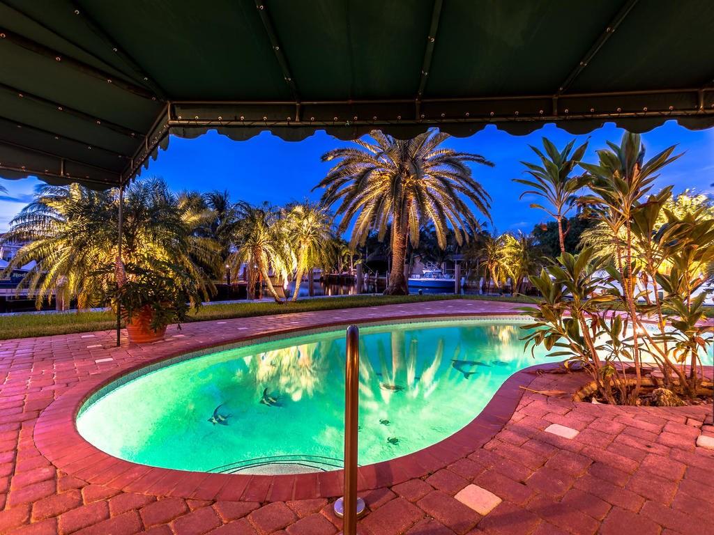 This Pool home on AMAZING point lot with 200 FOOT of new dock AND SEA WALL! Deep water, no fixed bridges. GREAT floor plan. PRIVATE AND SPACIOUS master bedroom french doors out to the pool area AND AMAZING WATER VIEWS. Large laundry room and pantry off open kitchen with natural gas. Amazing views of the water from EVERY room. A MUST SEE! PLEASE CLICK ON VIDEO TOUR.