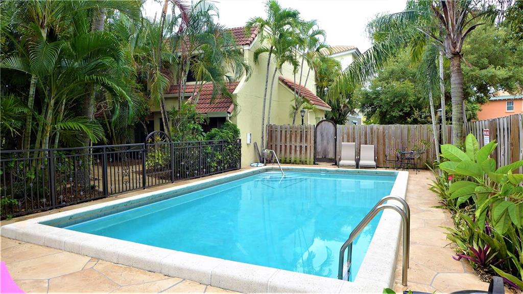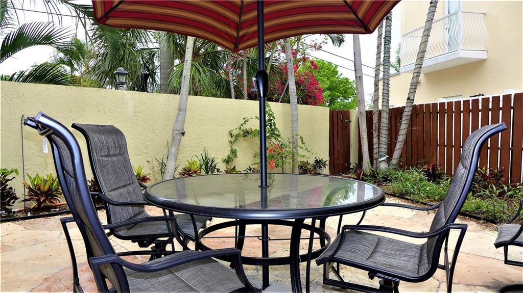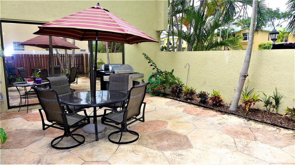 Rarely available corner townhome featuring 2 large master bedrooms w/ private en suites & walk in closets, beautifully remodeled kitchen w/full pantry, SS appliances, granite counters & seating area. Open & bright living room w/recessed lighting, washer & dryer in unit & serene private backyard perfect for entertaining! Tropical landscape & peaceful tranquility adorn this private & perfectly located gated boutique community of only 8 units! Minutes from beaches, downtown, Las Olas & 17th Street Causeway!