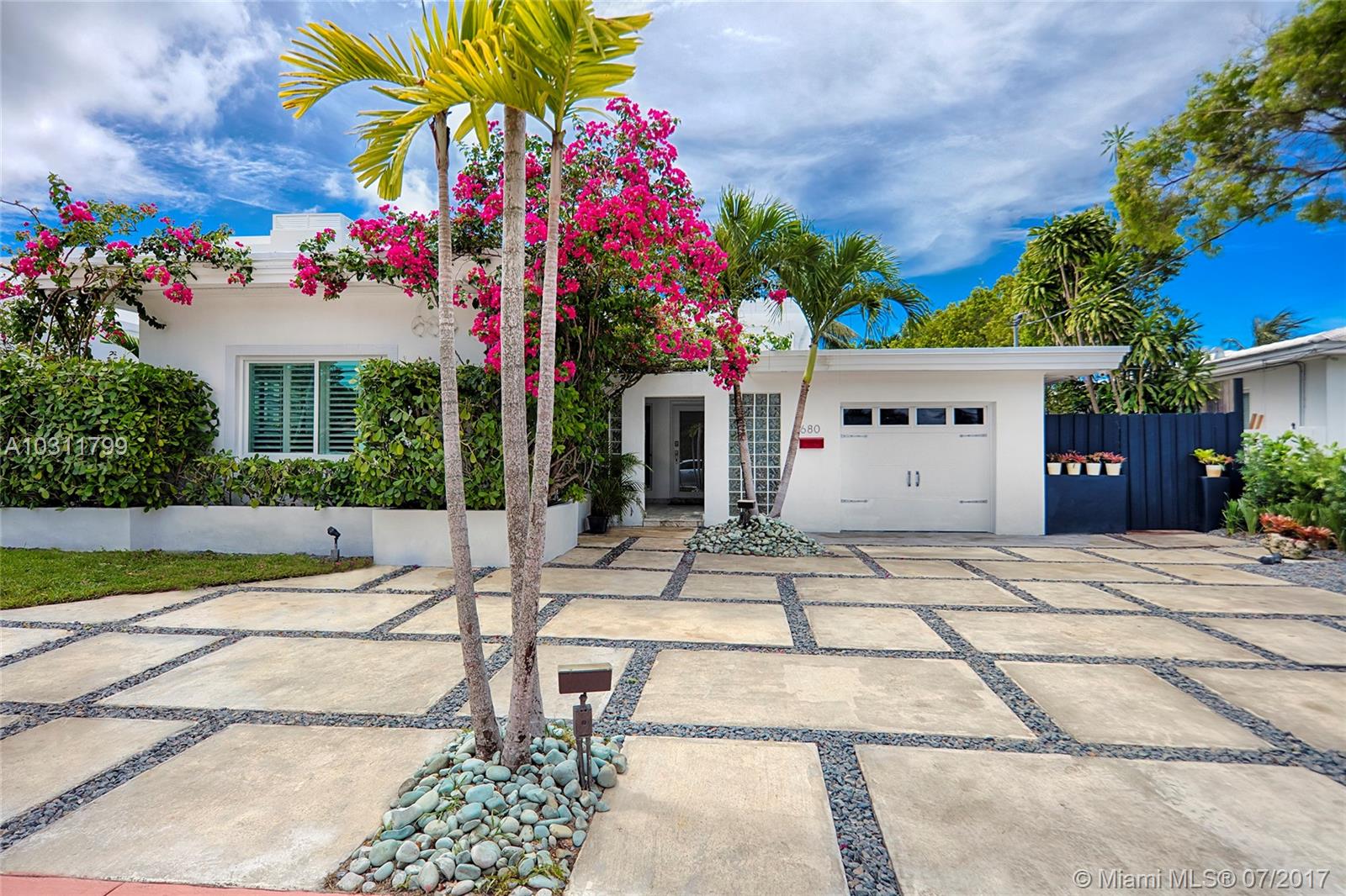 This enchanting fully renovated waterfront home is a hidden gem that needs to be seen. Fine marble & terrazzo floors, open layout w/spacious living, family & dining areas. New gourmet kitchen w/top of the line appliances, Quartzite center island & white quartz counter tops. Beautiful master suite w/walk-in closet & private patio w/Jacuzzi plus an amazing master bath. Spacious back yard w/tropical landscaping, large entertainment deck, dock & 60FT WF. Hurricane impact windows/doors. Room for a pool.