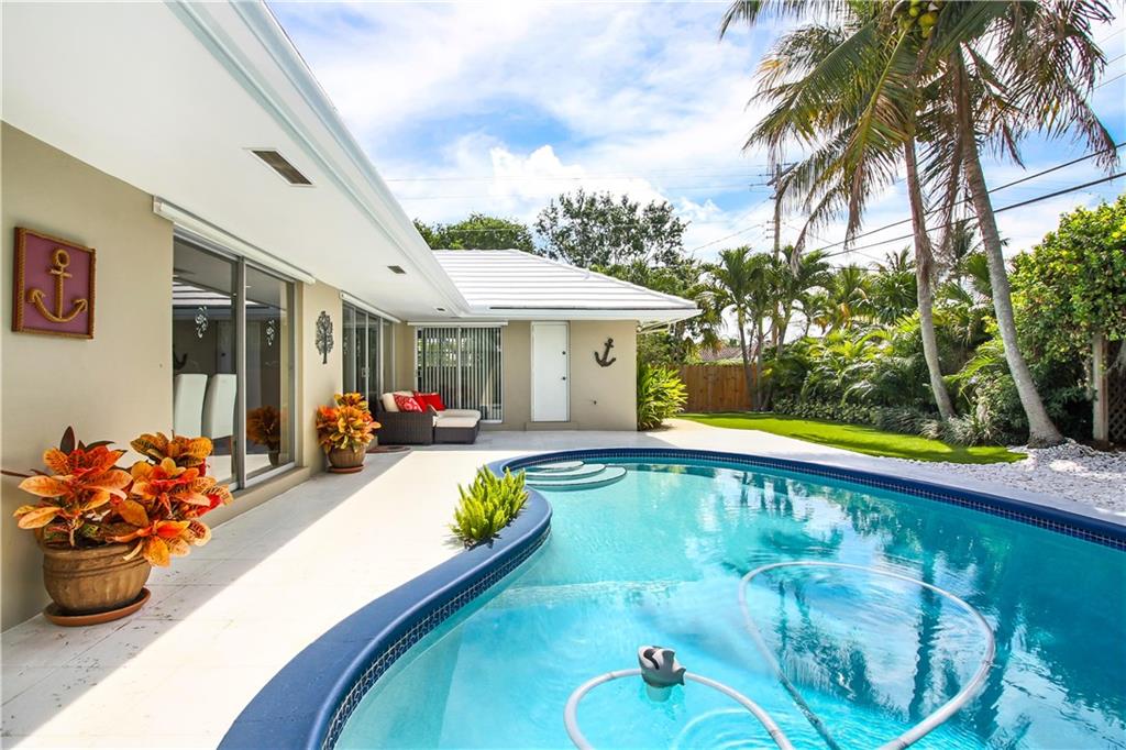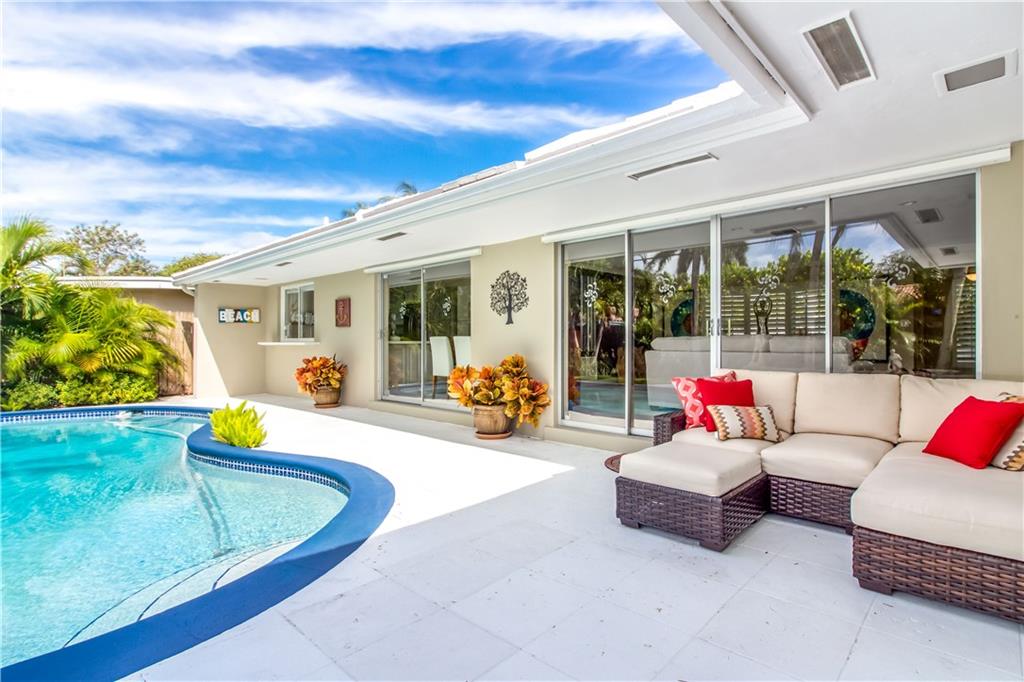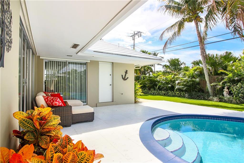 A Sophisticated Imperial Point Beauty! Modern, luxurious elegance at every turn in this 3BR/2BA/2Car Garage pool home. Beautifully appointed finishes w/captivating views of the pool & lush gardens from the oversized windows. Gourmet Kitchen w/quartz countertops, Carrara back splash, ss appliances & walk-in pantry. Serene, private master w/marble cabana bath. Features include antiqued limestone floors, custom lighting & moldings. NEW: tankless water heater, pool pump, A/C, astroturf grass. More to see!