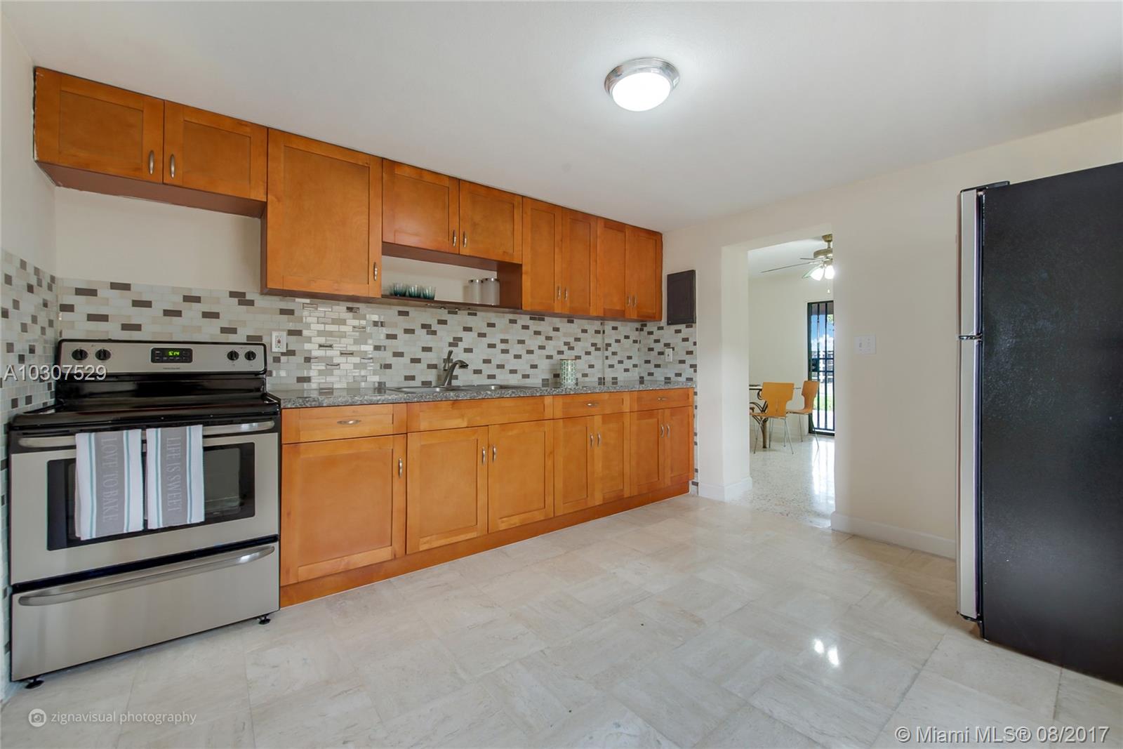 Beautiful remodeled Large home in quiet neighborhood 5 min from airport 15 min from Doral/Miami New kitchen & stainless appliances granite counter tops Italian marble on kitchen floor, new porcelain tile downstairs & polished terrazzo floors in dining room New paint inside & out upgraded bathrooms maintained windows, New AC downstairs newer AC upstairs new light fixtures, 7 ceiling fans 3 covered patio decks in front, top floor & back 1 new washer total of 2 refrigerators 2 washers/2 dryers New landscaping/sod Top floor can be separate in-laws quarters or income producing, can open side to be a private entrance for 2nd floor. Large backyard with shed, concrete slab for parking vehicles or boats Side parking for 4+ vehicles or a boat New 6' tall wood fence for privacy,great priced home