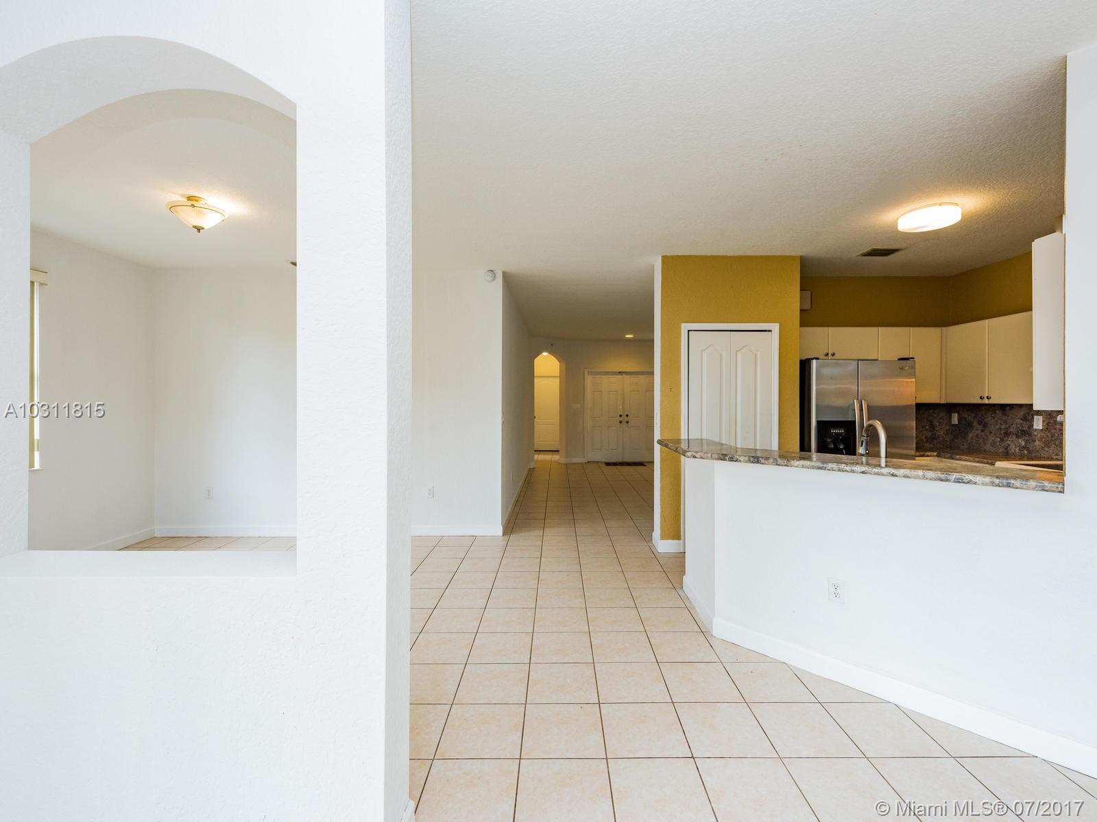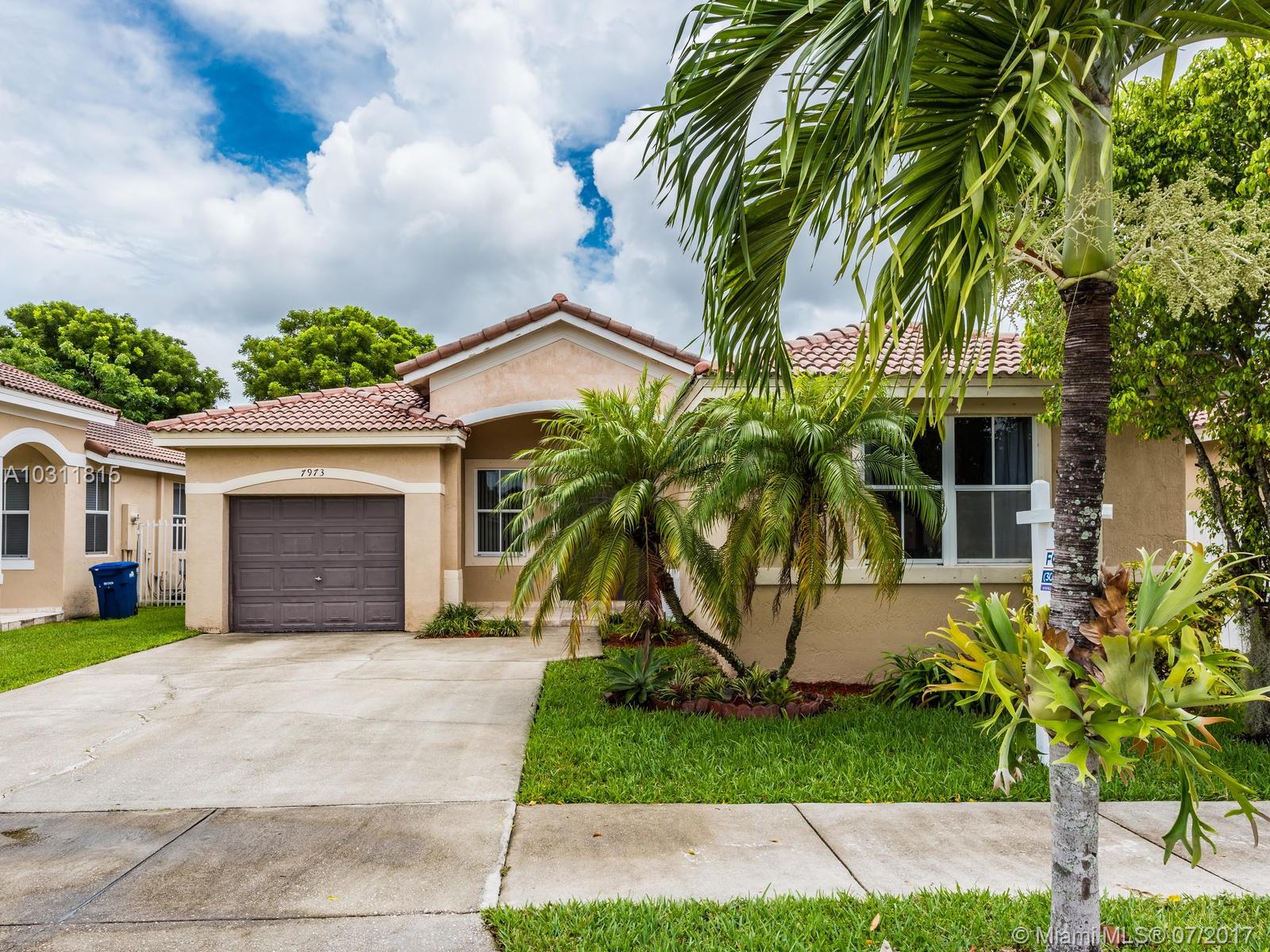 Beautiful 4 bedroom, 2 bath with garage in coveted Spanish Lakes in highly desirable (33015). This beautiful large family home boasts 1,890 square feet under A/C and generous open floor plan. Large, open kitchen with counter for stools, lots of cabinet space and large pantry. The master suite is large, bright and airy with his and hers walk-in closets relaxing master bath with separate tub and shower and private commode. Tile floors, freshly painted, fruit trees in the patio, covered porch and laundry room in garage. Located close to everything, schools, shopping, minutes from I-75 and Palmetto. Great family oriented community with club house and pool.