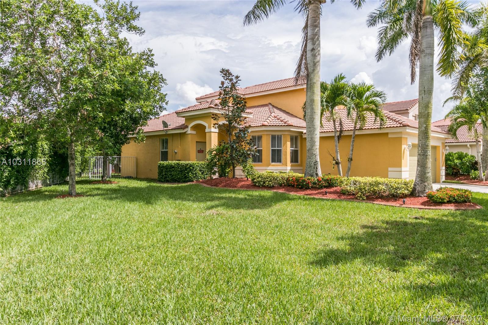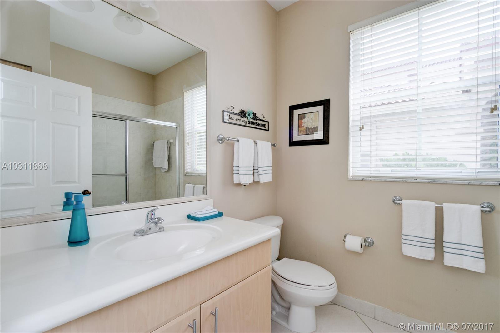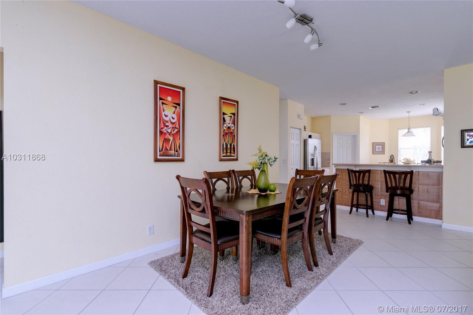 Aspen II Model 4/3 Single Family House at Preserve I, Savanna. Open floor plan with enough space and lights for all. Two master suites with full bathroom and walk-in closets. Kitchen with nice open breakfast with Bay windows, stainless steel appliances. Ceramic and carpeted and laminated wood floors. A/C from replaced on March 2013. 2 Garage spaces. Private, fenced backyard and Porch has wood deck floor, great for entertainment. Location, Location this home is in one of the best family gated community in Weston, Best School District, close distance to major Highways.