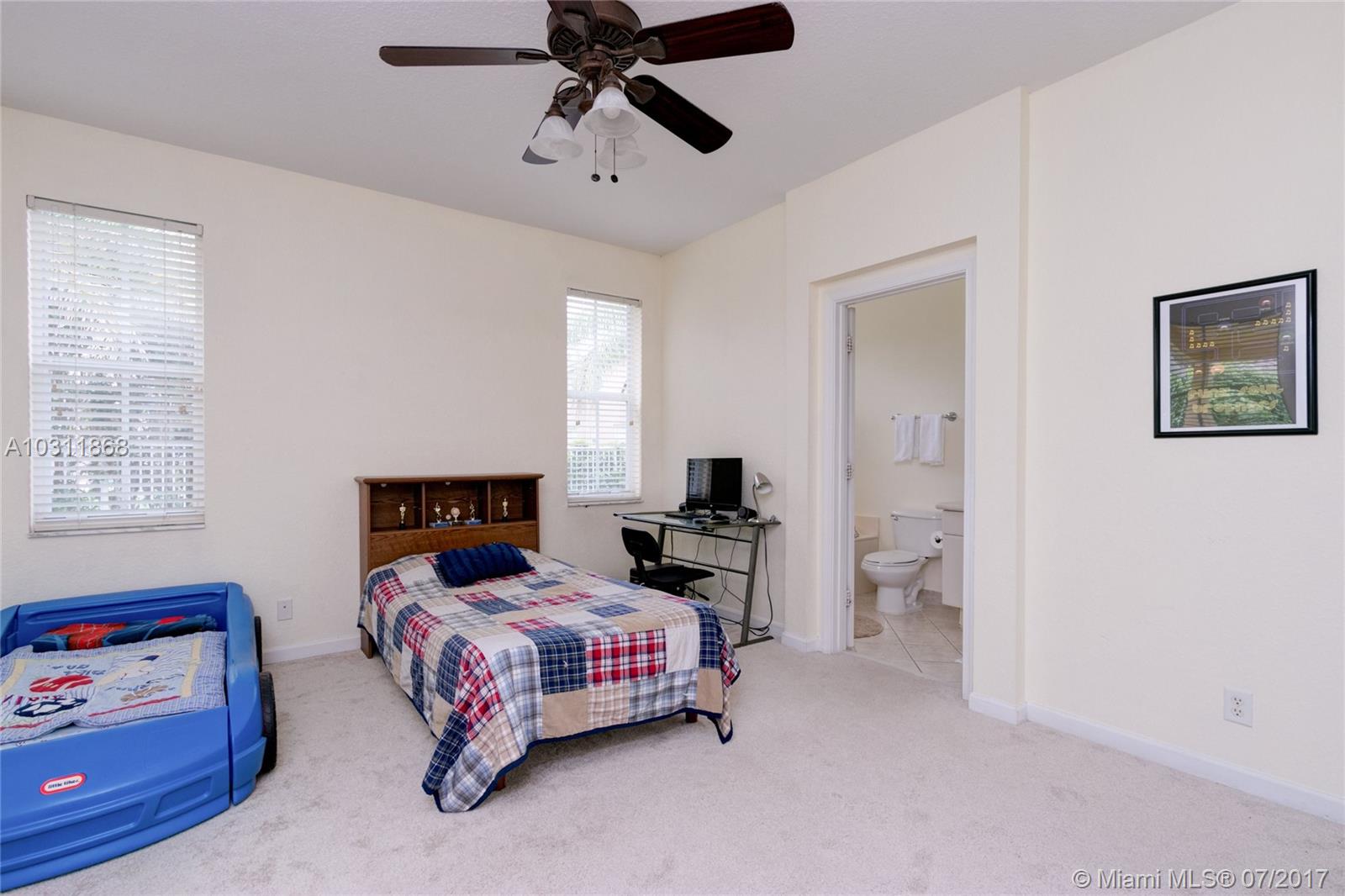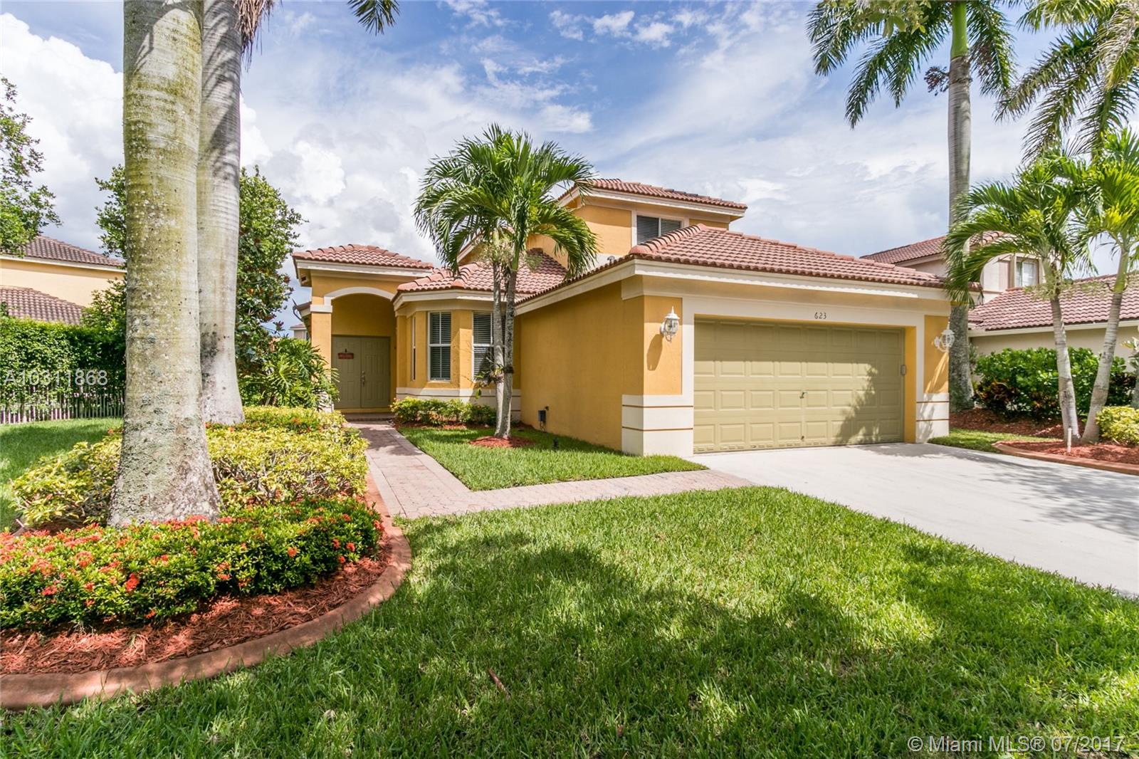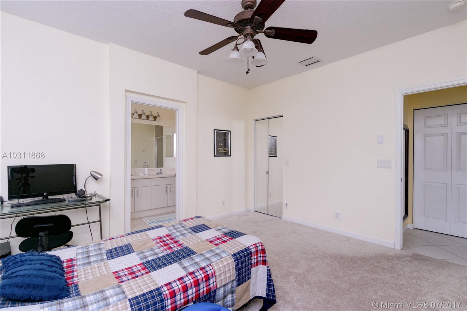 Aspen II Model 4/3 Single Family House at Preserve I, Savanna. Open floor plan with enough space and lights for all. Two master suites with full bathroom and walk-in closets. Kitchen with nice open breakfast with Bay windows, stainless steel appliances. Ceramic and carpeted and laminated wood floors. A/C from replaced on March 2013. 2 Garage spaces. Private, fenced backyard and Porch has wood deck floor, great for entertainment. Location, Location this home is in one of the best family gated community in Weston, Best School District, close distance to major Highways.