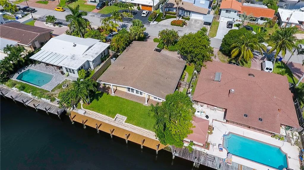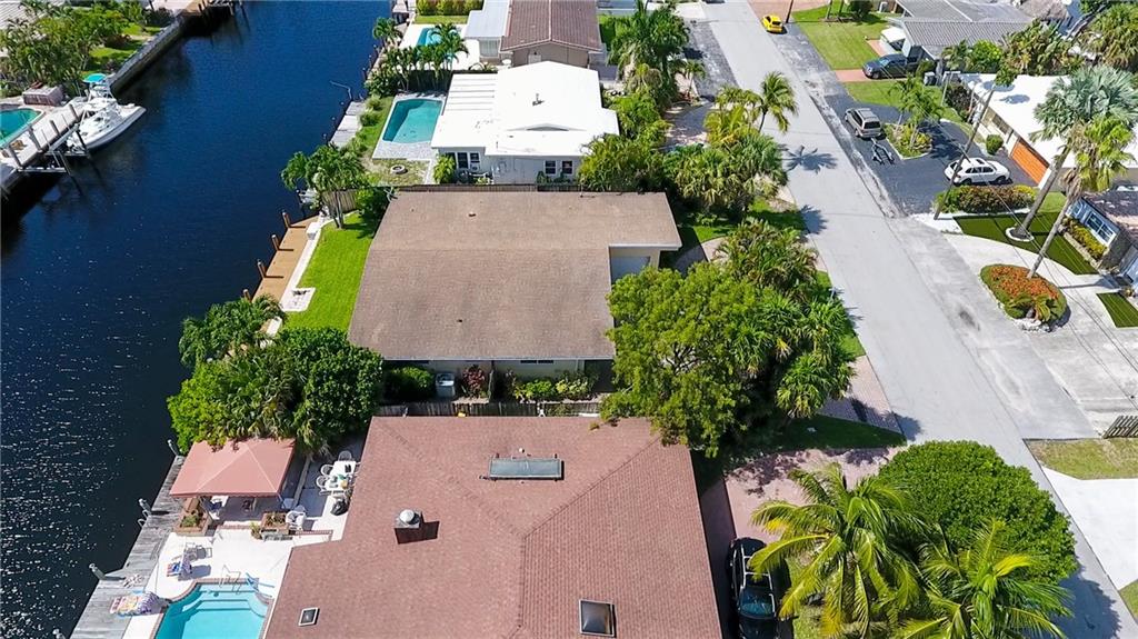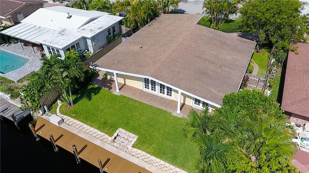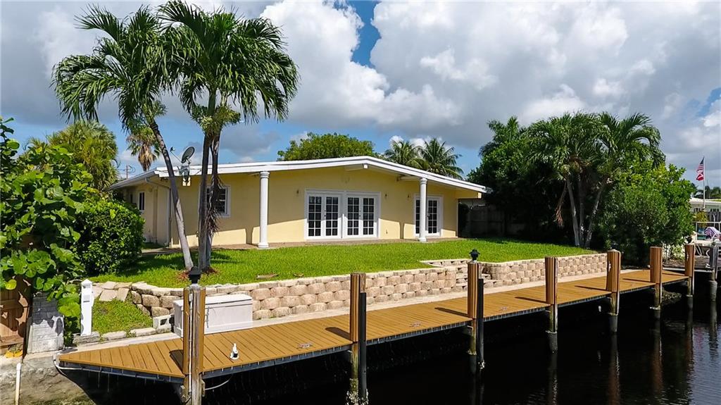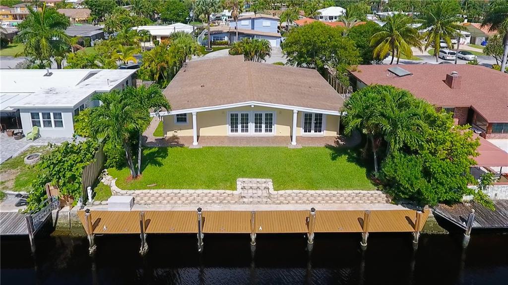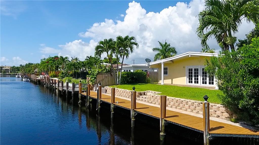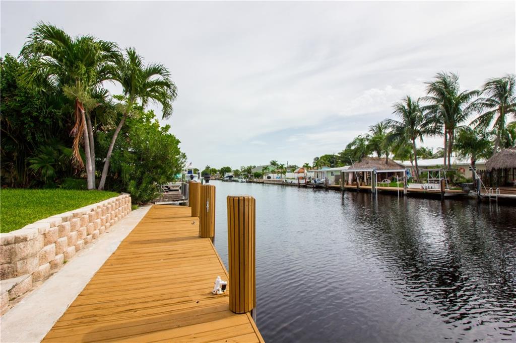 Beautifully updated 3 bedroom 2 bathroom split floor plan waterfront home with one fixed bridge. (Federal Highway bridge) Open kitchen with granite countertops, updated baths. Hurricane impact windows, doors and shutters. Vaulted ceilings with great water view. Updated electrical panel and hurricane impact garage door. Roof 2006. Double oven, island in center. Great for entertaining. Room for a pool. Garage
