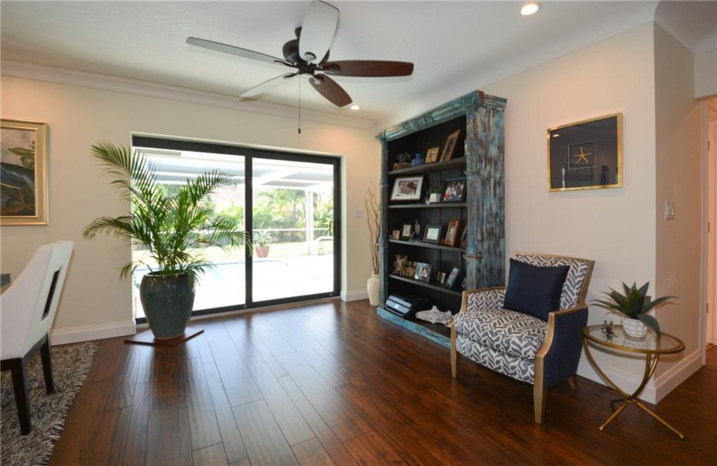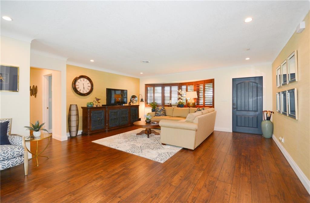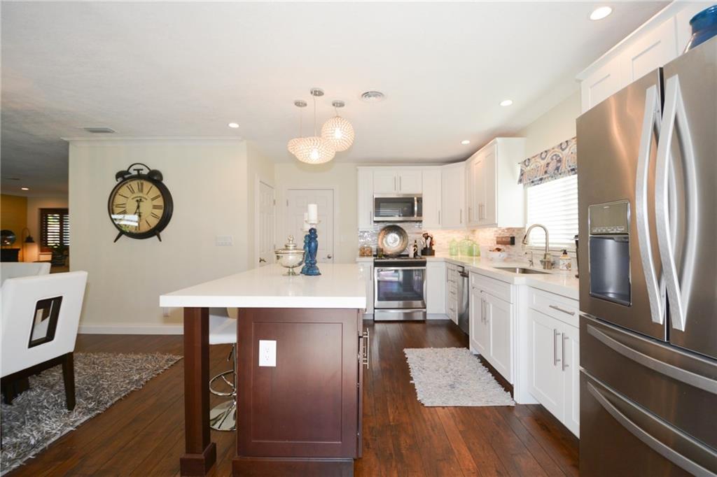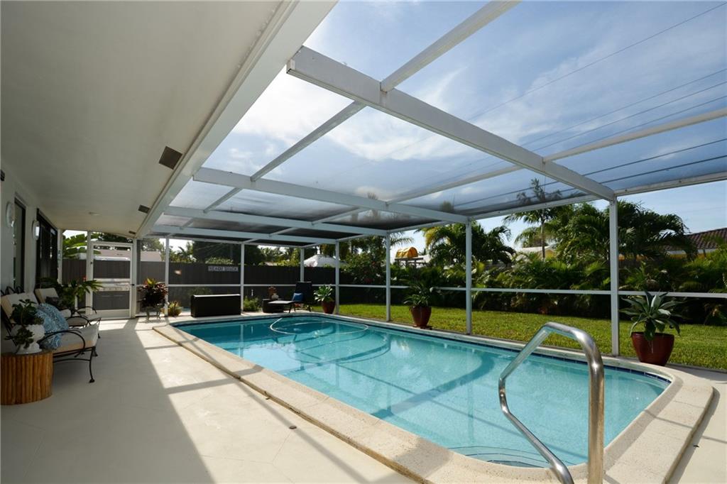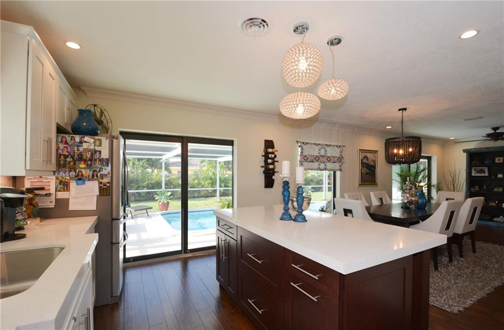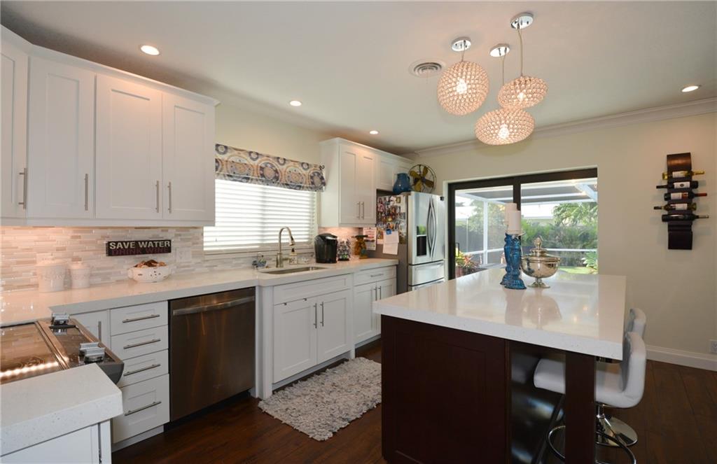 This 4 bed 2 bath completely renovated pool home has it all. Kitchen has been reconfigured & updated with new cabinets, center island, lighting, quartz counters, new SS appliances, pantry and tiled backsplash. Living & dining area boasts an open concept with a bay window & new laminate wood flooring throughout. Both baths renovated top to bottom one has a cabana door to pool. One bedroom has been converted to huge walkin closet for the MB. ALL new Impact/hurricane Windows and Doors. New solar pool heater!