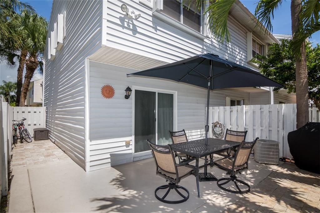Corner unit townhome walking distance to the beach! This lovely home offers an updated kitchen with granite countertops, spacious living and dining areas, 1/2 bathroom downstairs and a large fenced patio with brick pavers. The upstairs has two master suites with updated bathrooms. Flooring is included in the attic for extra storage. Boat slips available for rent/purchase.