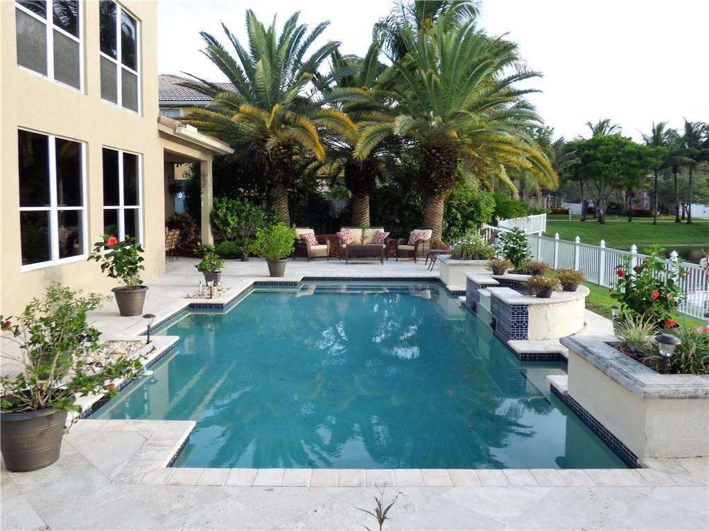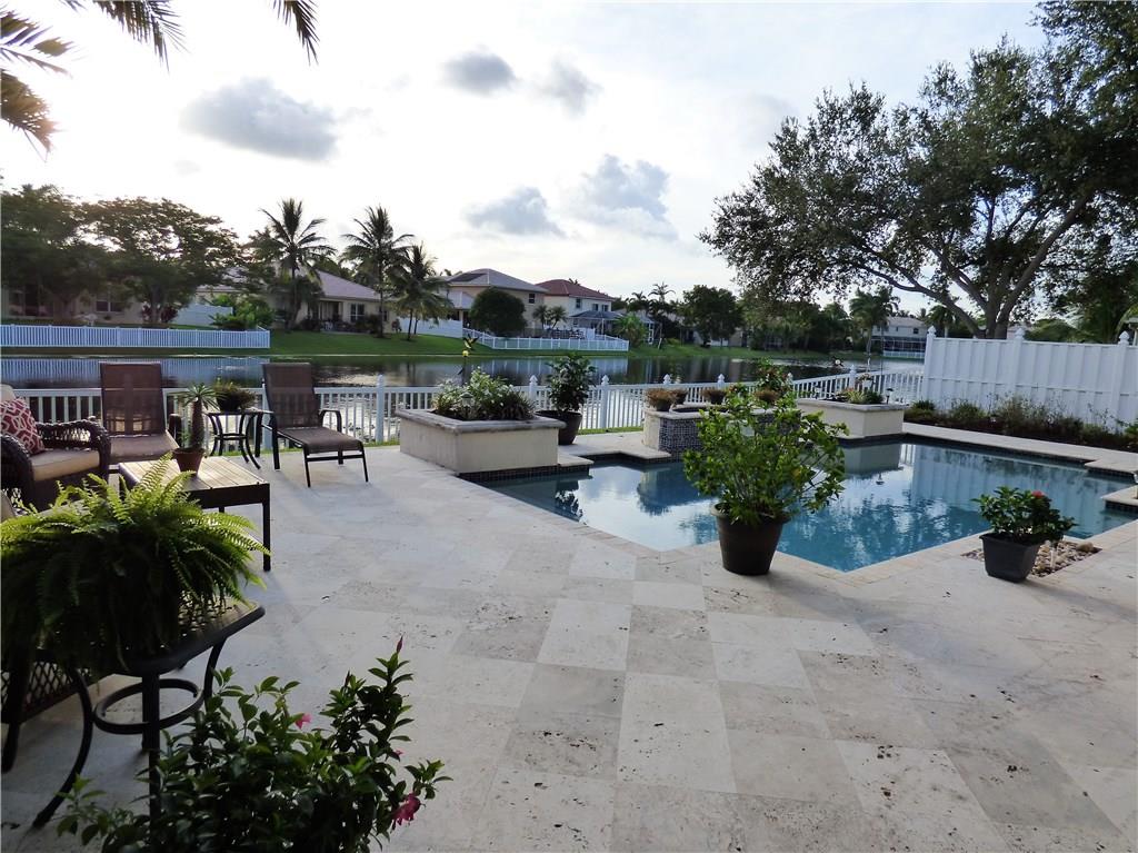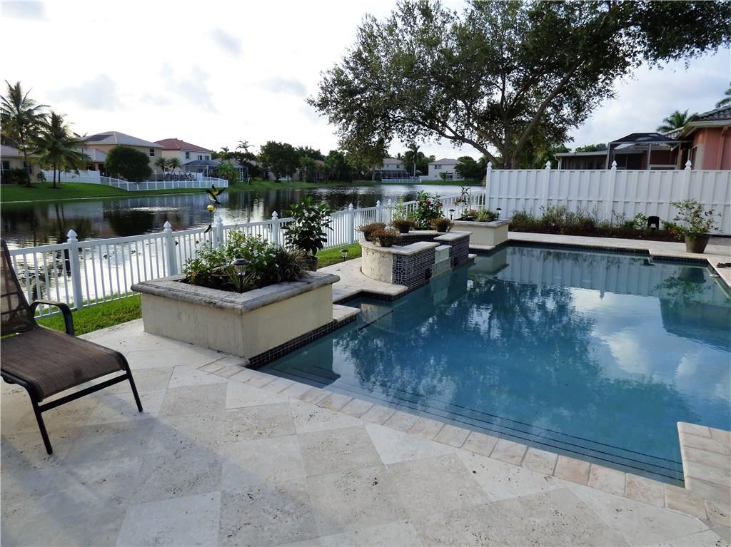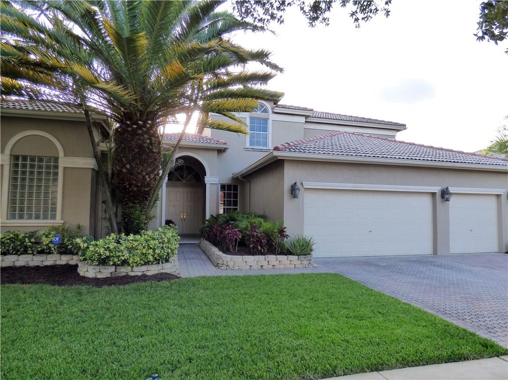 BEAUTIFUL & UPGRADED 5BED/3BATH/3CAR GARAGE HOME. GUARD GATED, NEWER KITCHEN W/ 42"CABINETS, GRANITE COUNTERTOPS & S-STEEL APPLIANCES. MARBLE & LAMINATE FLOORS DOWNSTAIRS,COLONIAL SHUTTERS, UPGRADED BATHROOMS, CROWN MOLDING, FRENCH DOORS, INTERCOM SYSTEM, BUILT-IN CABINETS & CALIFORNIA CLOSETS. MASTER BEDROOM+ 1BED/1BATH ON 1ST FLOOR. AWESOME AND INVITING PATIO AREA, COVERED TERRACE AND BEAUTIFUL POOL. FENCED LOT WITH WATER VIEWS, PALM TREES & EXTENSIVE LANDSCAPING. VERY ATTRACTIVE HOME, DON'T MISS IT!