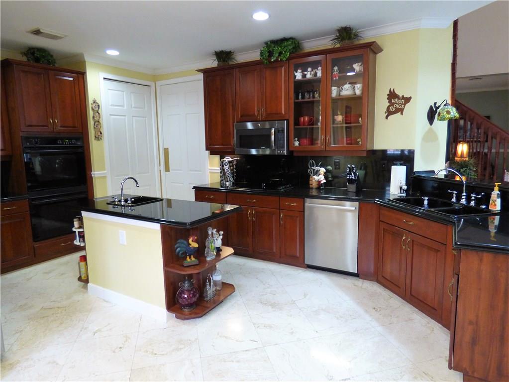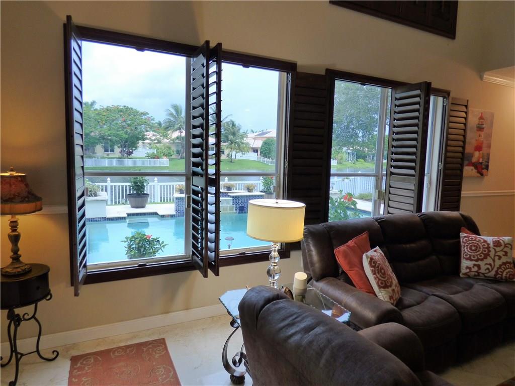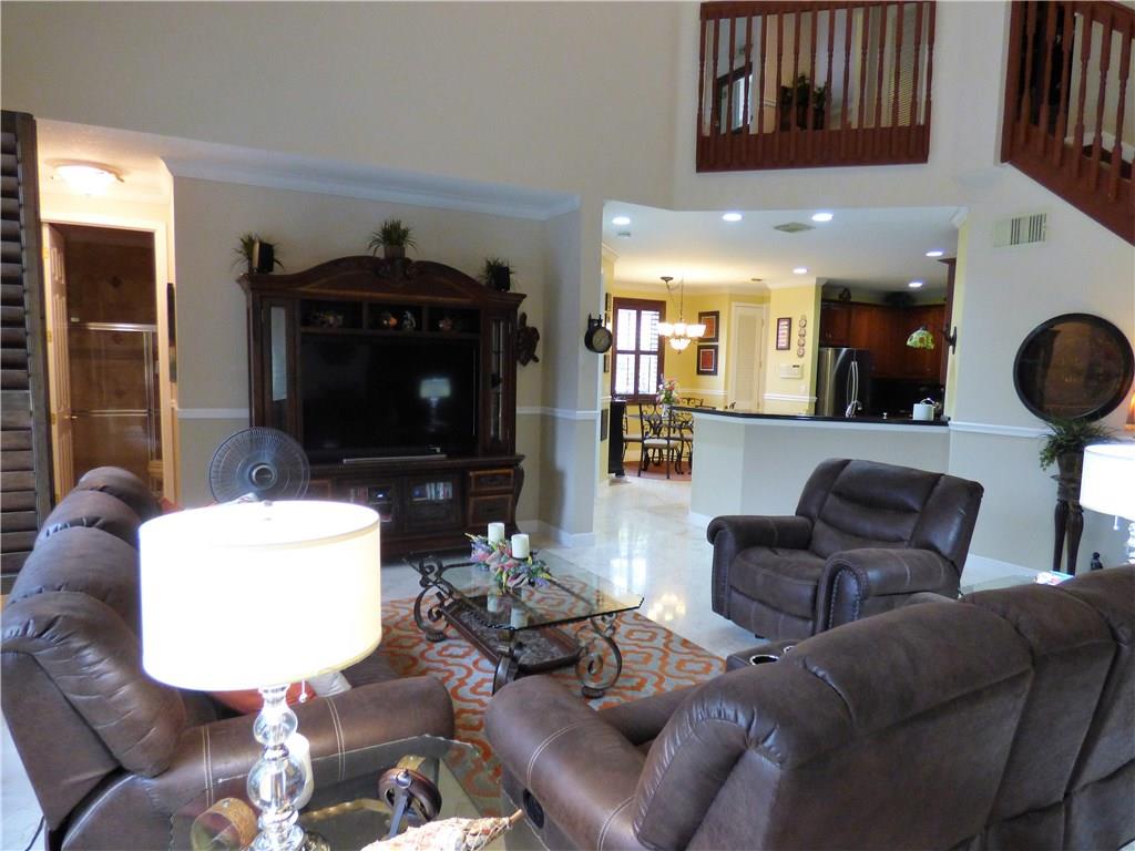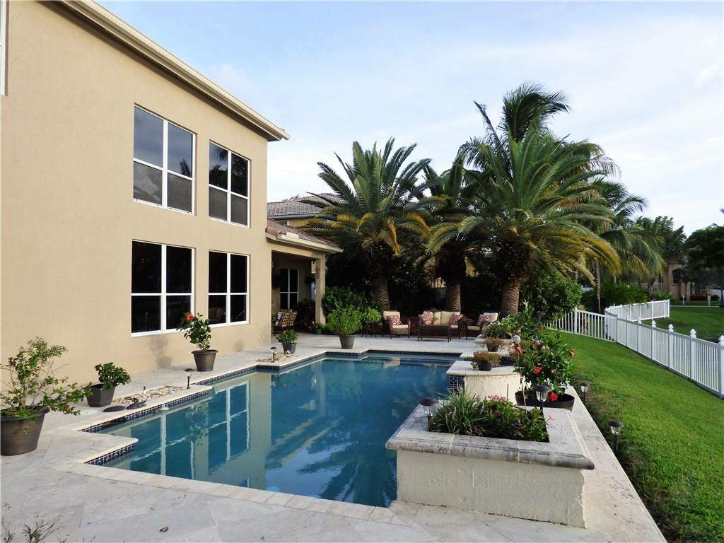 BEAUTIFUL & UPGRADED 5BED/3BATH/3CAR GARAGE HOME. GUARD GATED, NEWER KITCHEN W/ 42"CABINETS, GRANITE COUNTERTOPS & S-STEEL APPLIANCES. MARBLE & LAMINATE FLOORS DOWNSTAIRS,COLONIAL SHUTTERS, UPGRADED BATHROOMS, CROWN MOLDING, FRENCH DOORS, INTERCOM SYSTEM, BUILT-IN CABINETS & CALIFORNIA CLOSETS. MASTER BEDROOM+ 1BED/1BATH ON 1ST FLOOR. AWESOME AND INVITING PATIO AREA, COVERED TERRACE AND BEAUTIFUL POOL. FENCED LOT WITH WATER VIEWS, PALM TREES & EXTENSIVE LANDSCAPING. VERY ATTRACTIVE HOME, DON'T MISS IT!