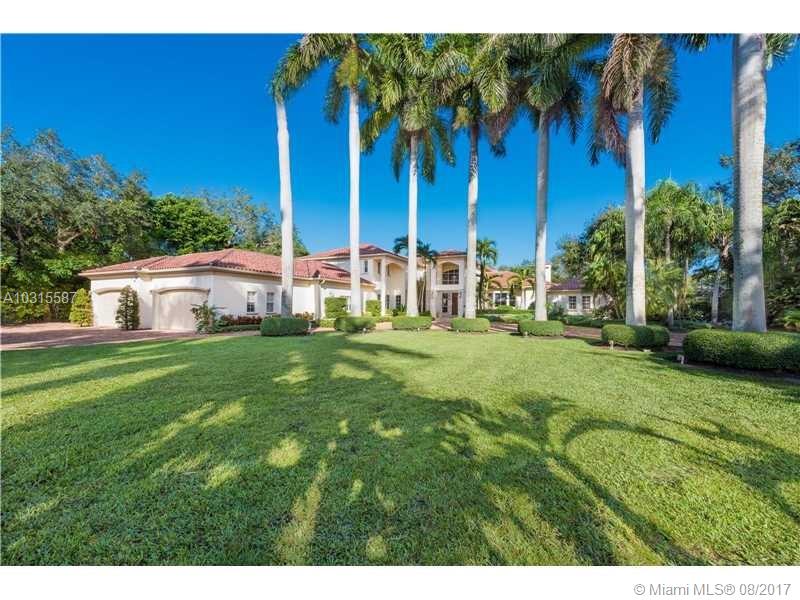 Beautiful finishes and prime location on gated acre in north Pinecrest. This 2 story 6BR/5.5BA home includes library, bar, gym & 4 car garage. Lofty ceilings shed abundant light throughout the home. Marble & wood flooring. Enormous Chef's kitchen overlooks resort style pool, Jacuzzi & lighted sports court. Elegantly appointed Master suite. Fireplace, generator & more. Lushly landscaped on very quiet street.