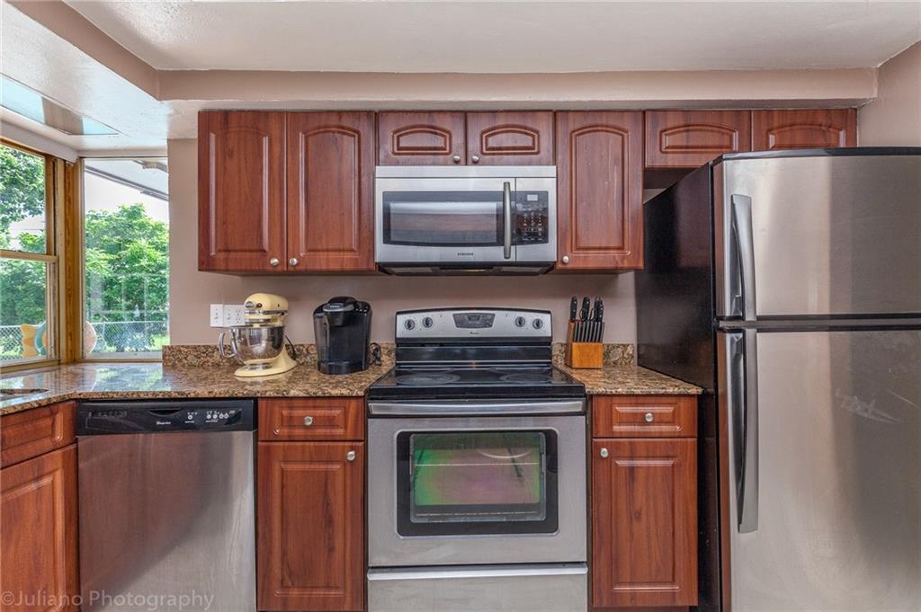 Lovely & Spacious 3 bedroom 2 bath Pool (Den has been made into a 4th bedroom). Open and airy with lots of windows & light. New A/C and Beautiful Kitchen with granite countertops & SS appliances, there are windows that open to the pool creating a lovely view from the kitchen. This home has lots of Curb Appeal- new stucco and freshly painted exterior. New pavers in front & Pool area. New Hurricane shutters and more.