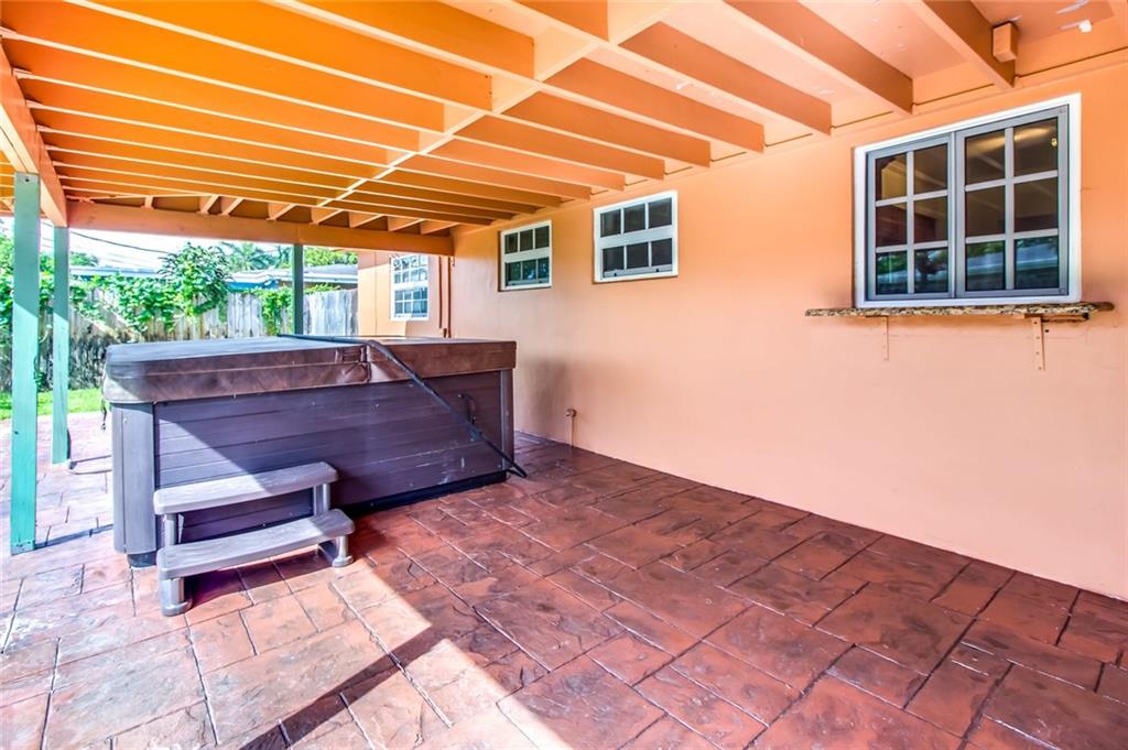 Completely updated 3 bedroom 2 bathroom home in Lyons Park. Granite in kitchen and bathrooms, stainless steel appliances. Barrel tile roof 2004, flat roof 2015. Baseboards and crown molding, hurricane impact windows, sprinkler system, utility room with washer, dryer and storage. Gas dryer, wired for alarm. Air conditioner 2009, tankless water heater. Large backyard great for entertaining with a hot tub. Stamped concrete driveway with a carport.
