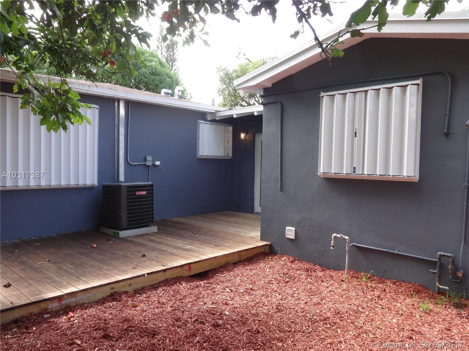 Remodeled home on a very spacious corner lot. Great layout with brand new ceramic tiles, and remodeled bathroom. Updated electrical system, new kitchen with granite counter tops and brand new appliances, brand new A/C system, new hurricane shutters, new garage door and patio door, brand new fence and deck for entertaining. Great Hollywood neighborhood. Near to everything, shopping, highways, and entertainment. New appliances will be installed prior closing. Seller motivated!