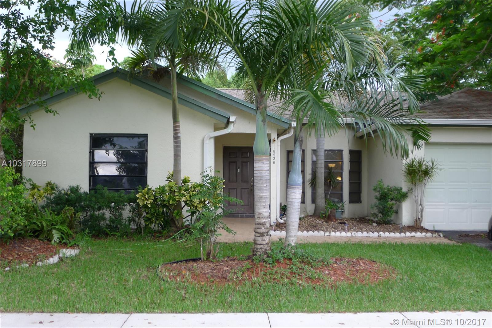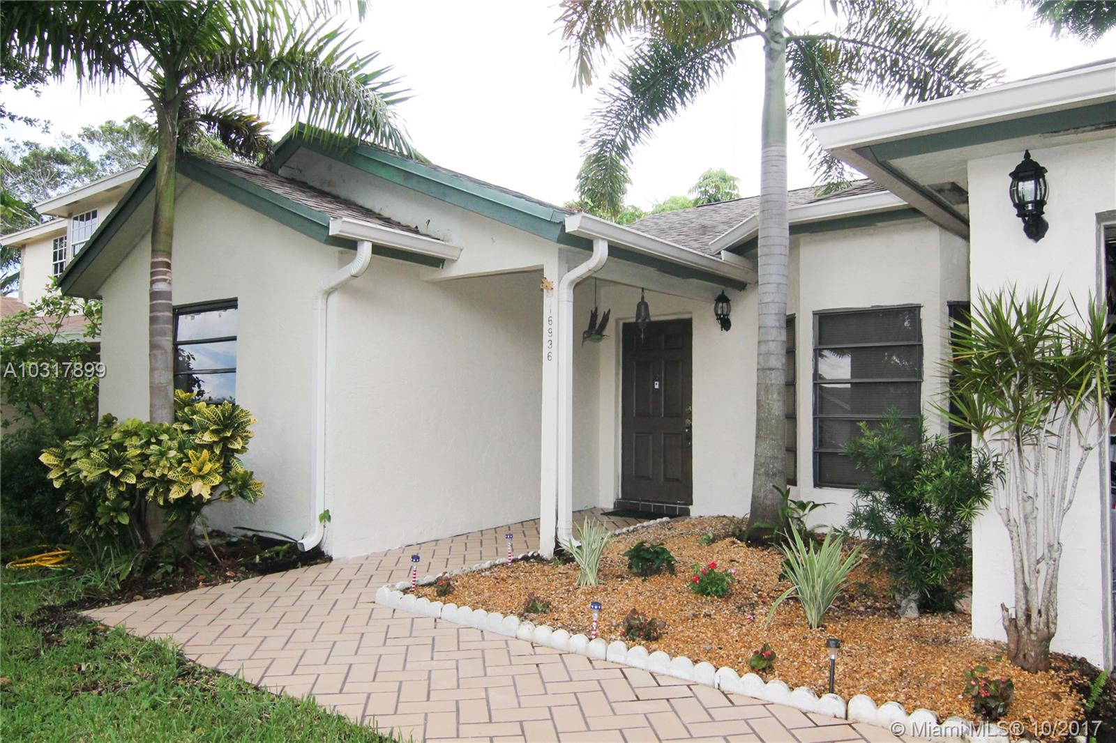 Priced to sell! HOA per year $275. Three bedroom 2 bathroom, 2 Car Garage, covered patio, backyard. Open kitchen with Family Room. Schools: Indian Trace Elementary and Tequesta. This home is located in one of the most conveniently located neighborhoods in Weston, Bonaventure Lakes. A living room and a large dining room that lead to the covered fully screened porch and to the backyard with fruit trees. Large glass window on the living room. The tennis court is down the street. AS IS not subject to appraisal. Membership to the Bonaventure Town Center at an annual fee $285. HOA annual $275.