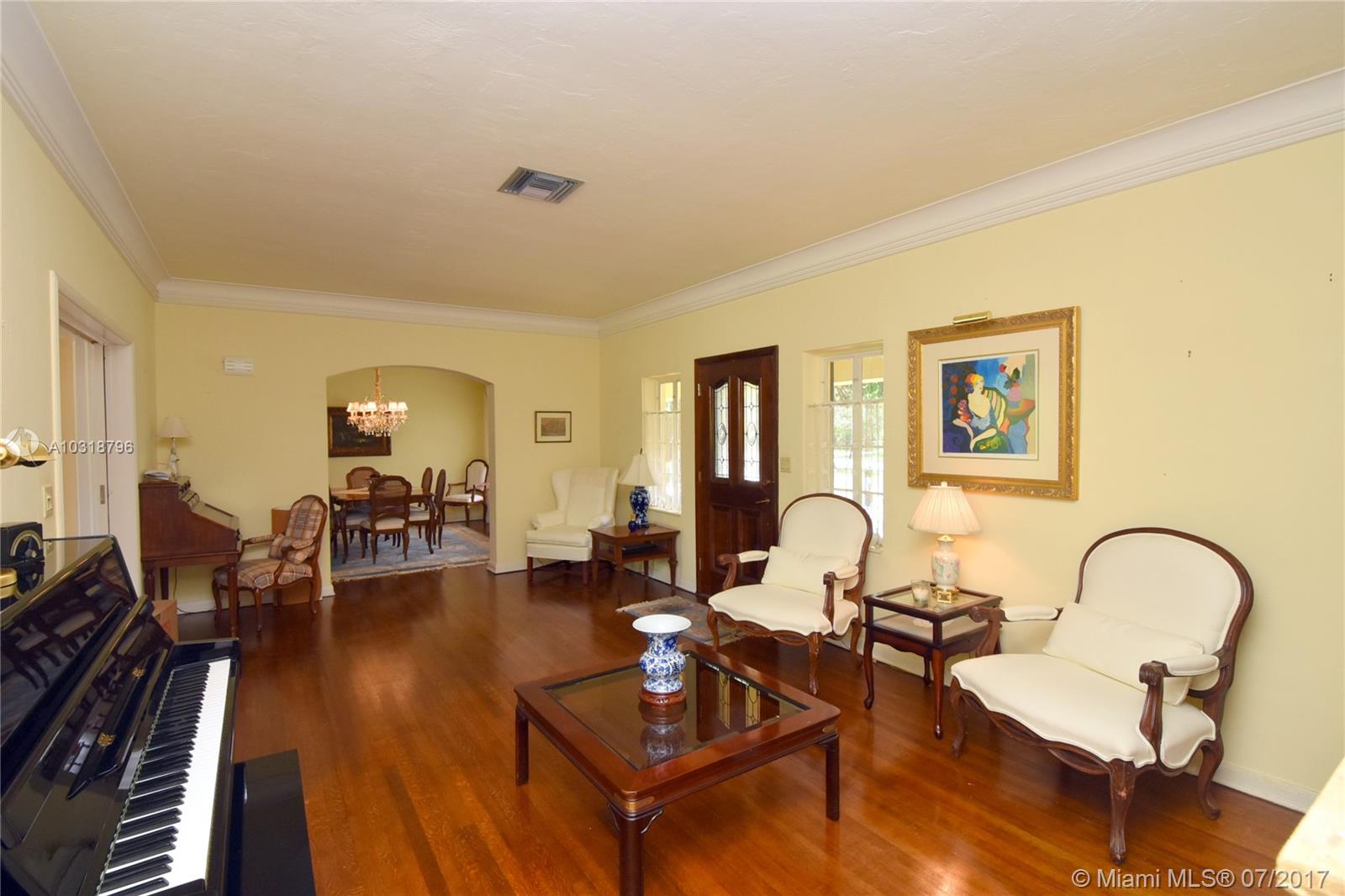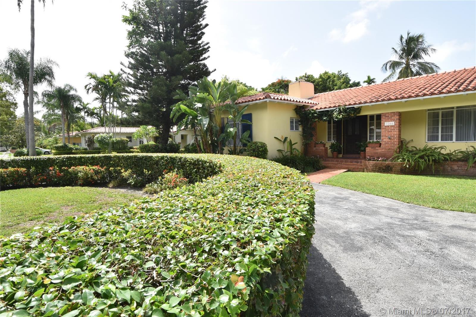 Precious 4 bedroom 3 bath home located in the "Golden Triangle" of Coral Gables. House sits on 12,900sf lot with room to expand and add a large pool. This property offers spacious bedrooms with hard wood floors and high ceilings, cedar lined closets, fireplace, updated kitchen and much more. Just a minute's stroll or bike ride to shops and restaurants on Miracle mile and steps away from the Youth Center and Public Library.