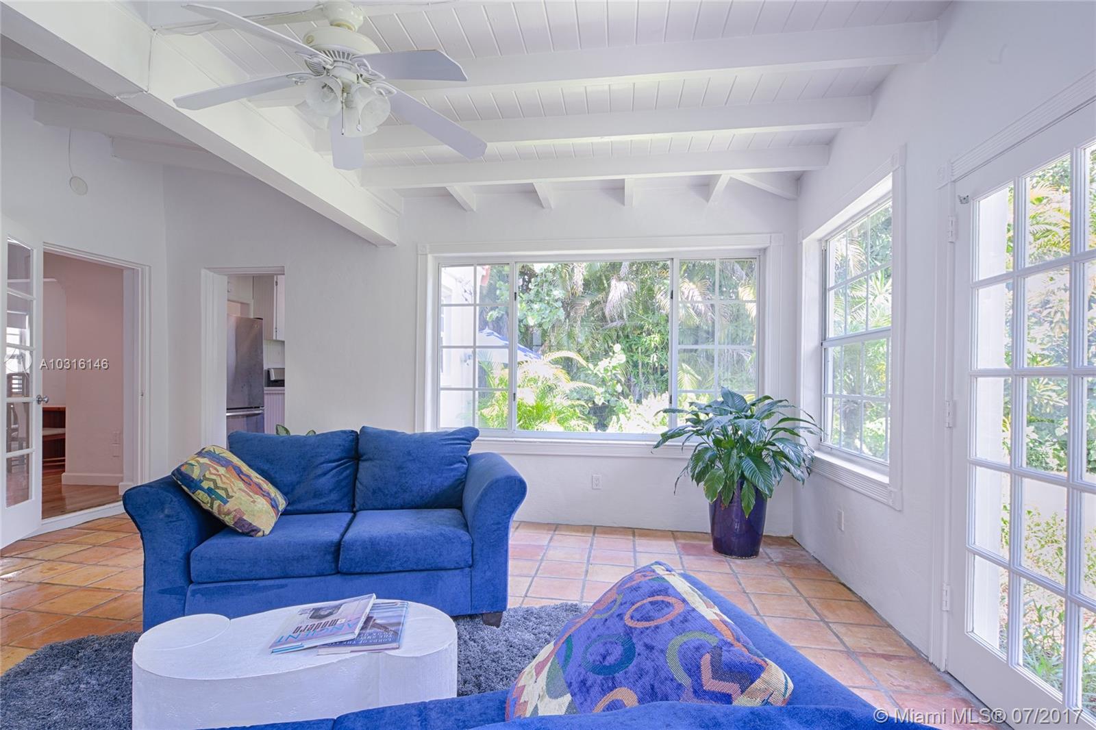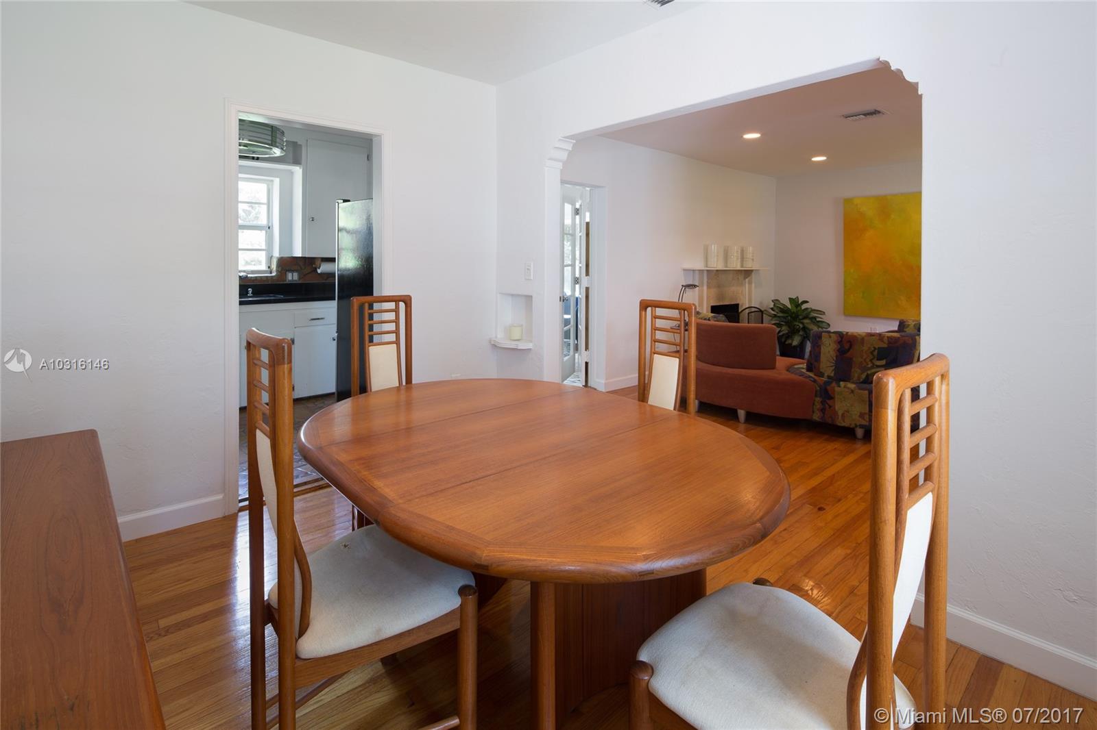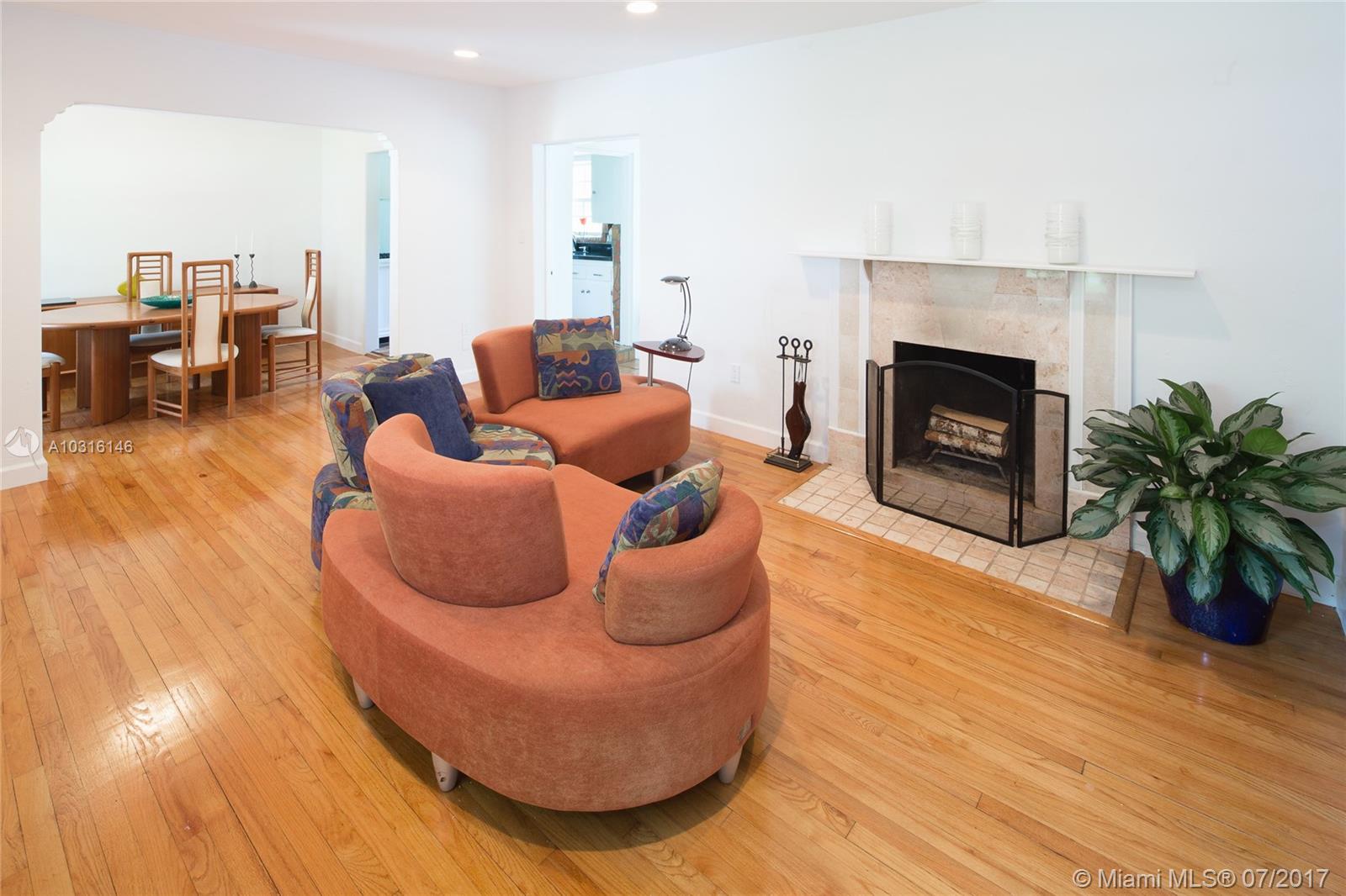 This stylish 1939 bungalow is centrally located in the heart of Miami Shores.Adorned with an abundant amount of natural light,gleaming hardwood flooring throughout,tile flooring in the spacious family room,wood burning fireplace,beautifully restored bathroom,galley kitchen with granite countertops and stainless steel appliances, spacious bedrooms with ample closet space and a one car garage.A spacious and lushly landscaped backyard with a variety of specimen plants allows for plenty of room for a pool.