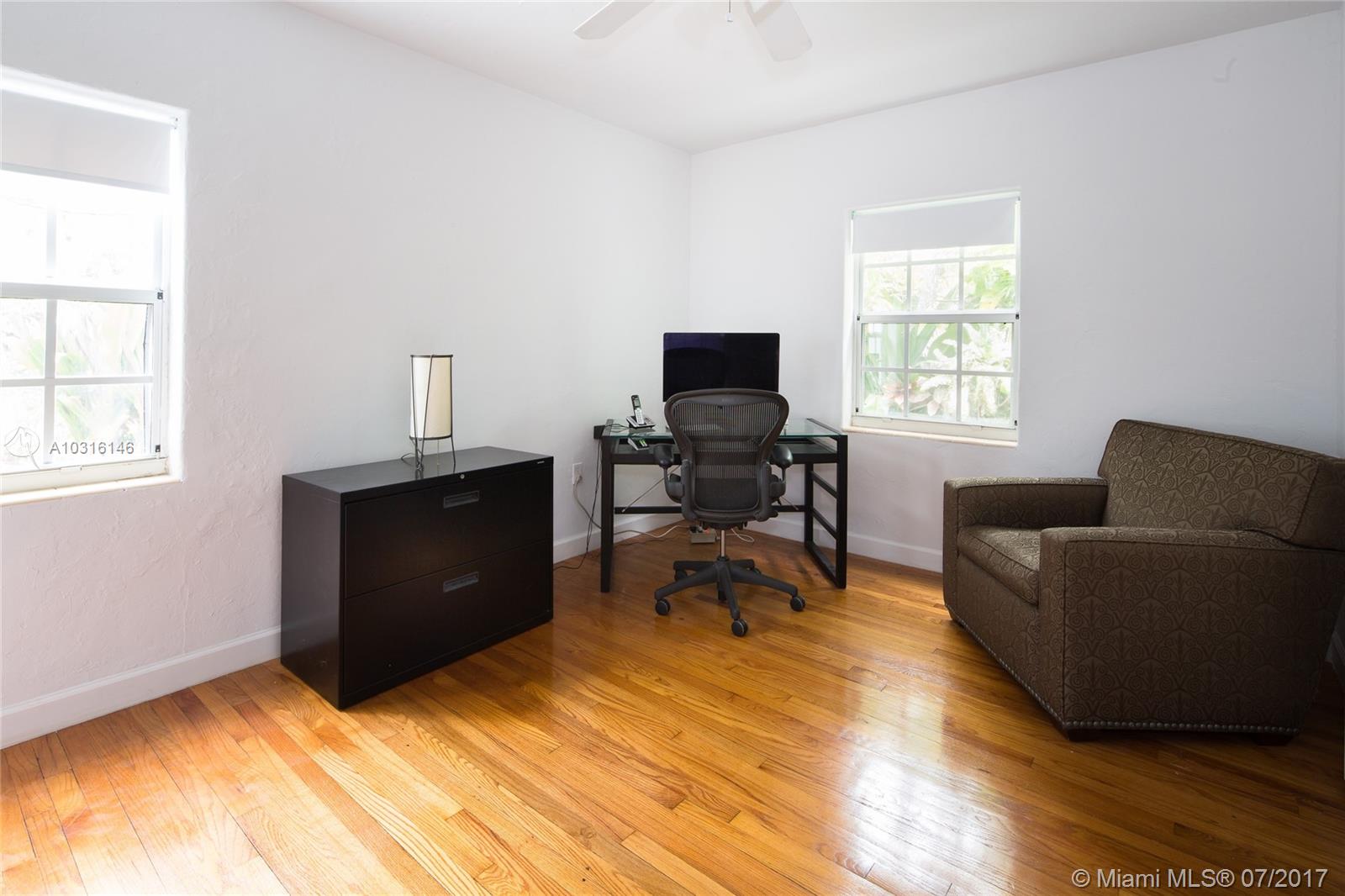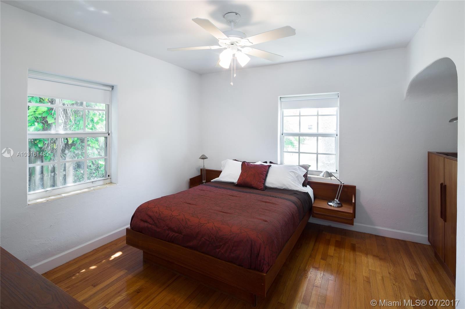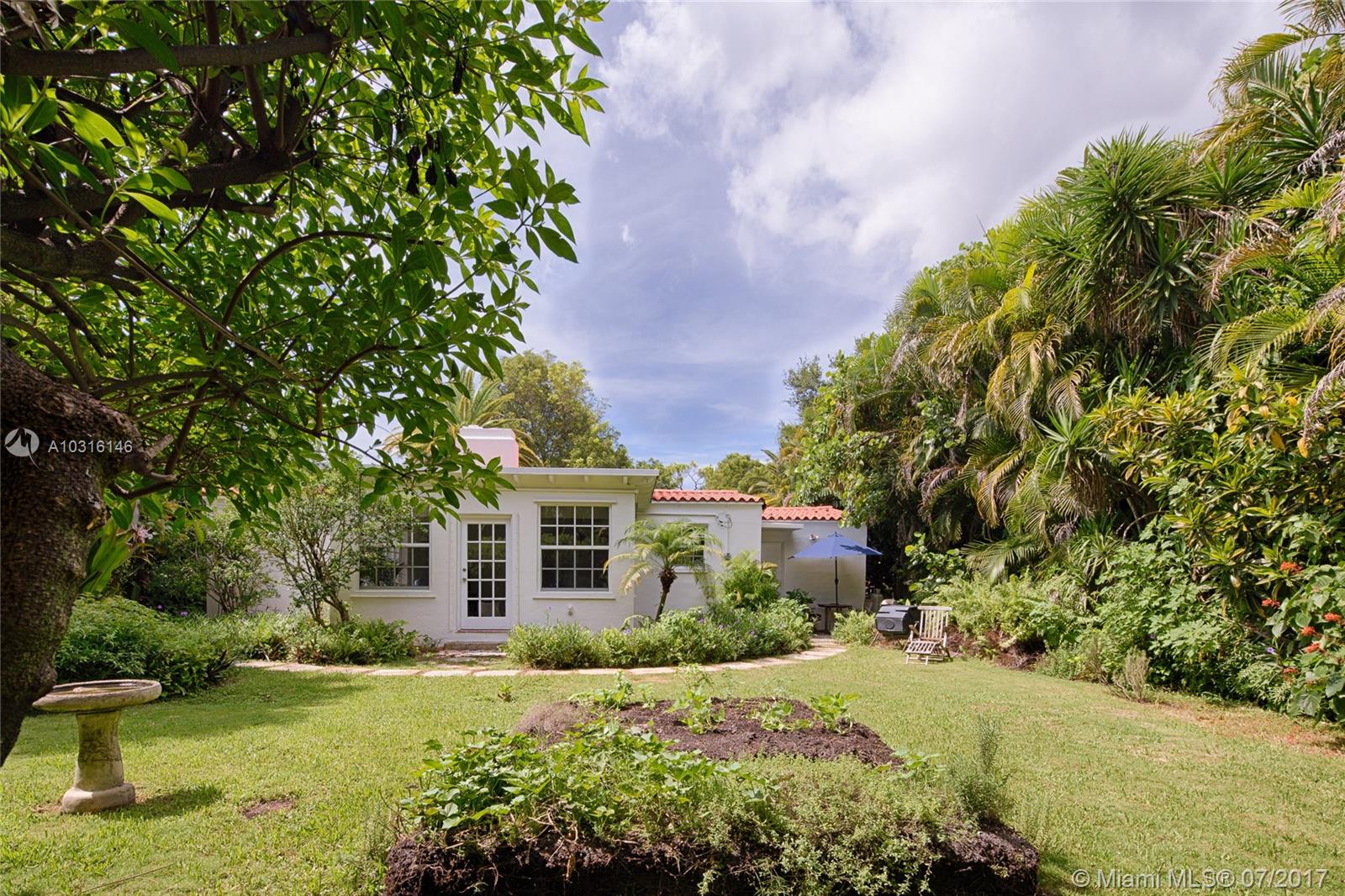 This stylish 1939 bungalow is centrally located in the heart of Miami Shores.Adorned with an abundant amount of natural light,gleaming hardwood flooring throughout,tile flooring in the spacious family room,wood burning fireplace,beautifully restored bathroom,galley kitchen with granite countertops and stainless steel appliances, spacious bedrooms with ample closet space and a one car garage.A spacious and lushly landscaped backyard with a variety of specimen plants allows for plenty of room for a pool.