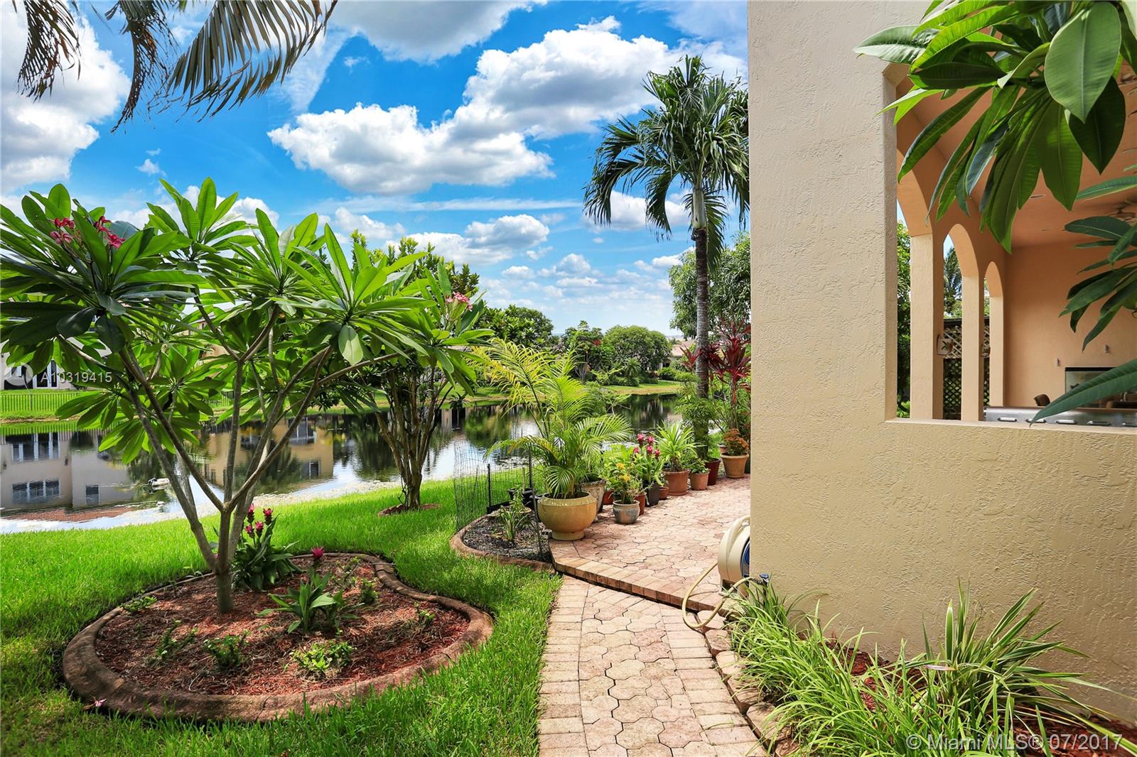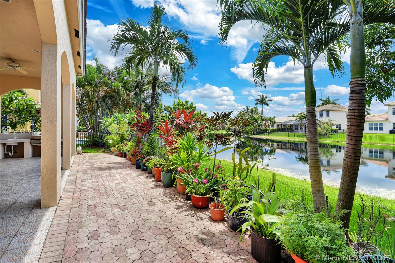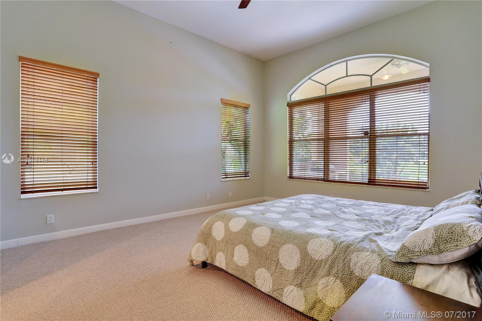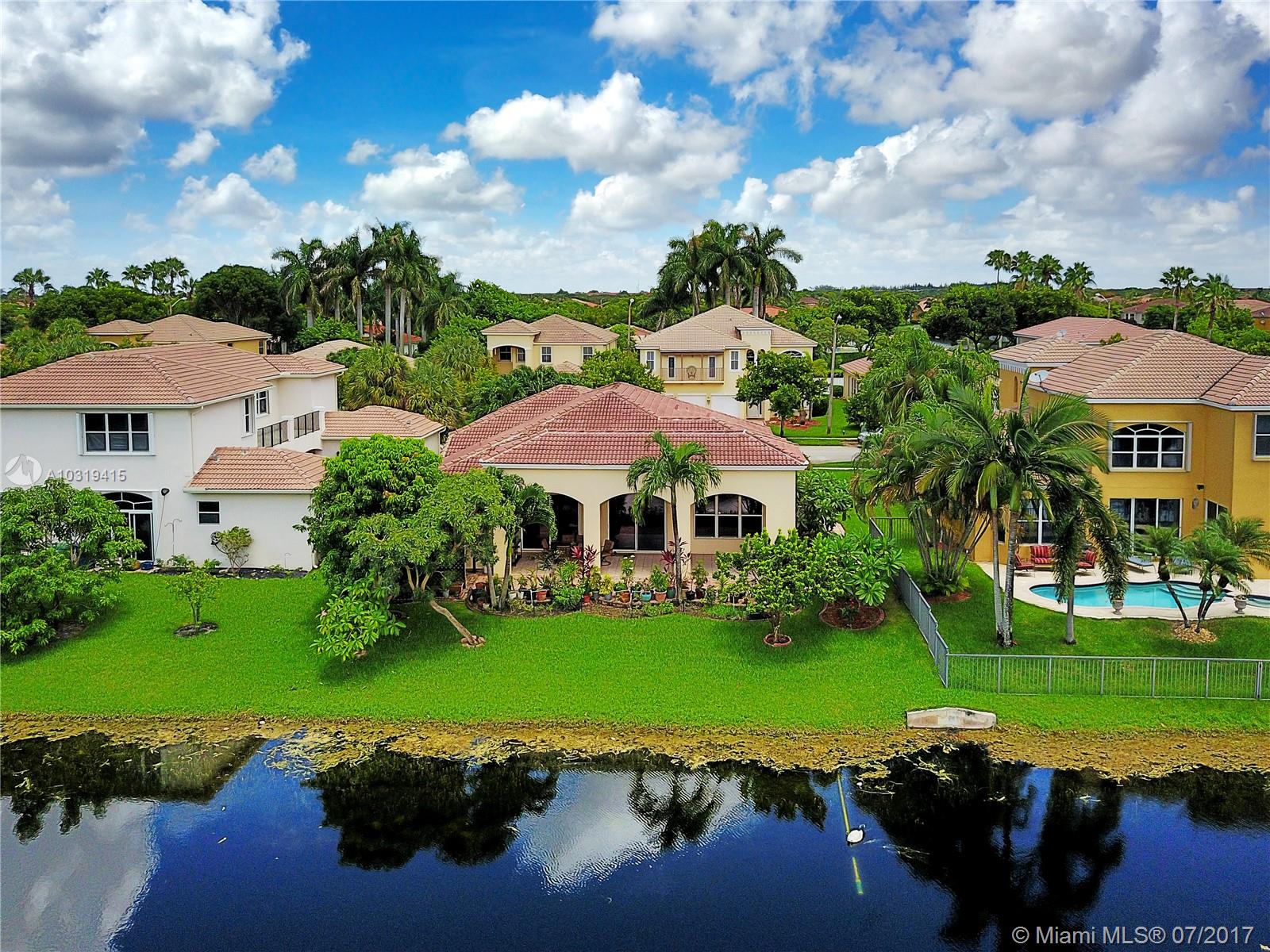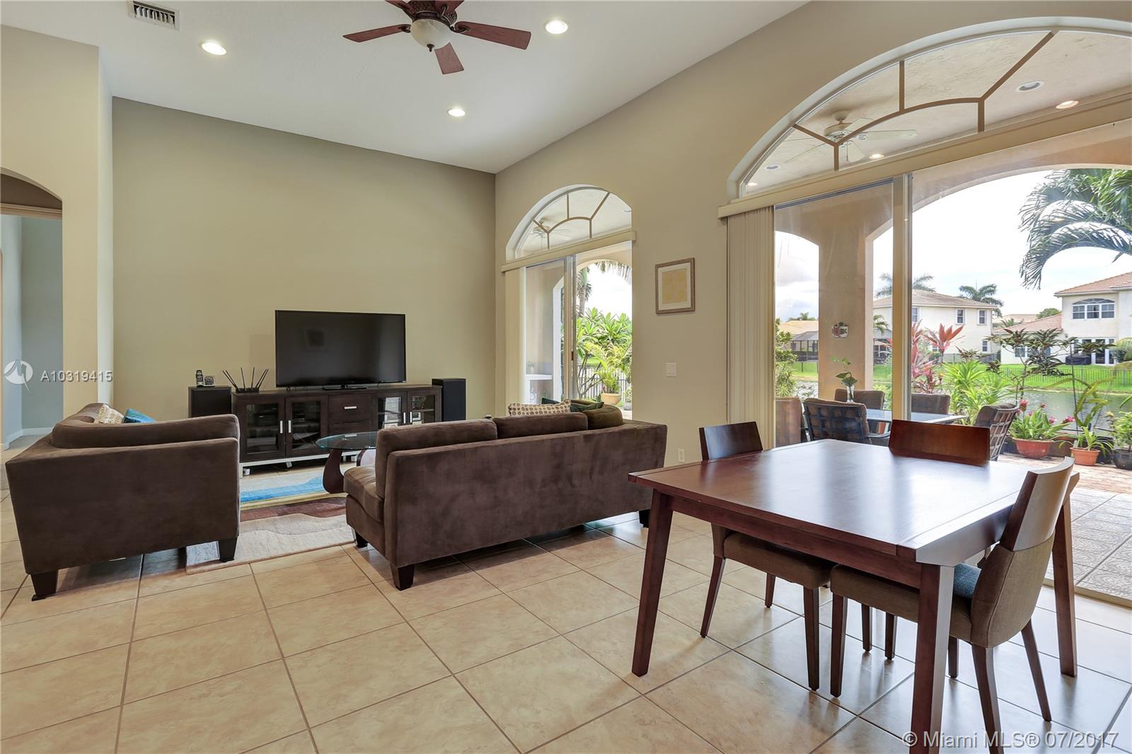 Welcome to this impeccable lakefront home! High ceilings throughout, Open and bright home featuring a split bedroom plan, tile throughout the living area, large living room & dining room, open kitchen with lots of countertops, island and cabinets galore. Large Family room and breakfast room overlooking a serene lake. Huge Master bedroom with high ceilings and 2 walk in closets. Tropical setting outside with a 400 sqft covered patio with arches and built in BBQ area. Florida living at its best!