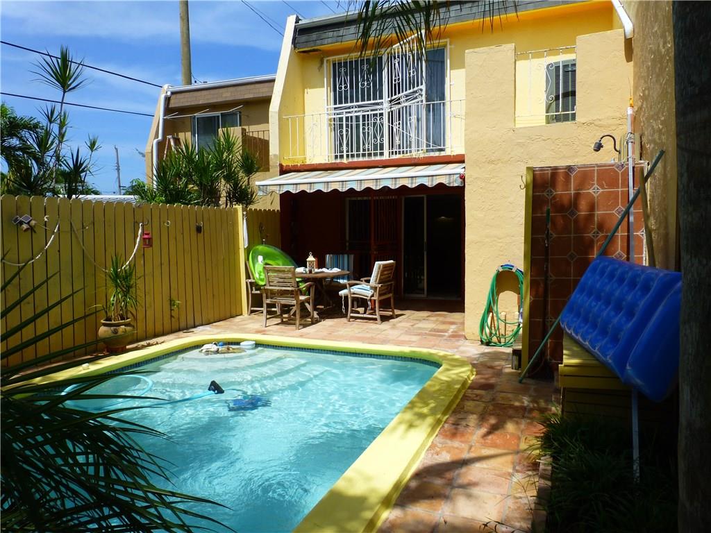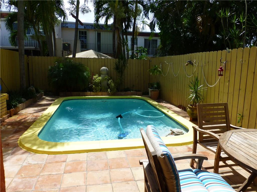 Spacious townhouse with private pool and no HOA fees. 1st fl: kitchen opens up to the living room, ½ bath, large room that can be used as a dining area or kids playroom and can easily be converted to another bedroom. 2nd fl: two large master bedrooms (originally a 3 bedroom converted into a 2 bedroom). The private fenced-in backyard has a private pool with outdoor shower and utility room with washer, dryer, tank less water heater etc. 2 parkings in front of the unit. Marina across the street!