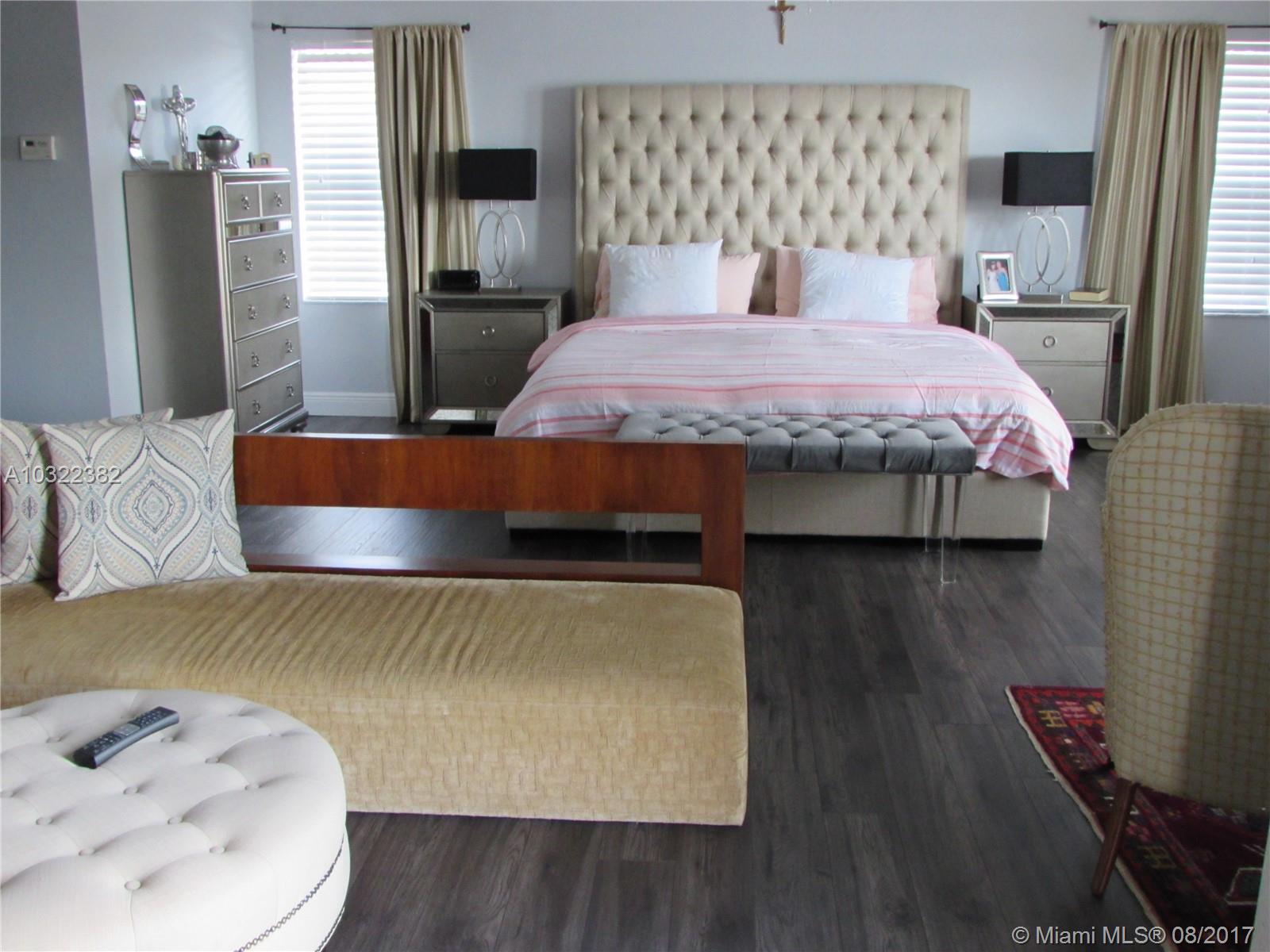 Wonderful 6 bed and 4 bath home in prestigious Sunset Falls gated community. Walk to clubhouse, resort-style pool, gym, tennis, basketball court and tot lot. Stainless steel appliances, granite countertop, new high-end laminated flooring through out second floor. Jack and Jill bath. Oversize three car garage. Watch the sunset from the second floor balcony facing a huge lake. Perfect room for a pool. A-rated school, close to I-75 and Turnpike, shopping plazas, malls and grocery stores. Lawn care included.
