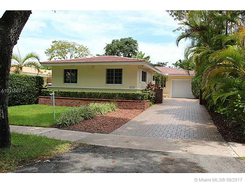 Renovated in move-in condition one story 3 bedrooms and 2 bathrooms home in quiet street in South Gables with spacious open layout. Updated eat-in kitchen and bathrooms with granite counters and wood cabinets.18x18 refinished marble floors and impact windows and doors. Good sized closets in bedrooms and linen closets in hallway. Laundry room, screened-in-porch with canvas, private backyard with pavers and one-car garage. Walking distance to parks. Price as per appraisal.