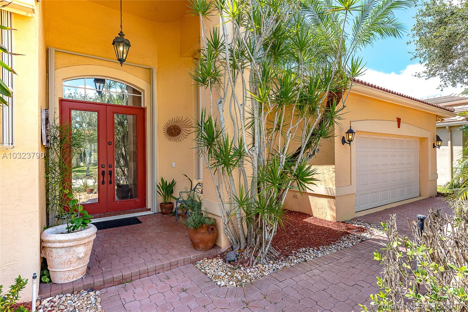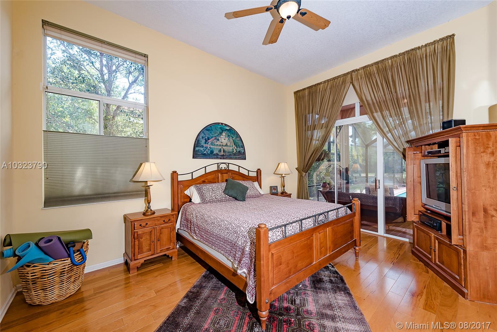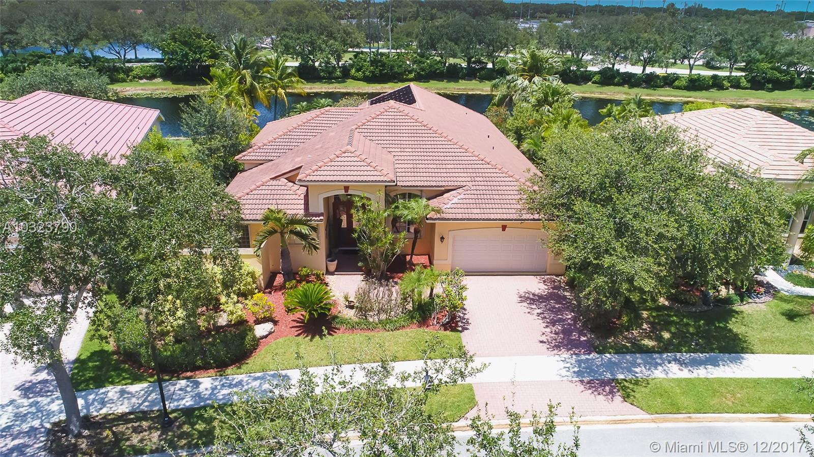 PRICE TO SELL ! Mediterranean flair tucked on a private lake front lot in Jasmine Island. One story home featuring 5 bedrooms and 4 full baths. Custom screened solar heated pool with raised spa and custom design pool deck. Open floor plan, volume ceilings tile in living areas and hardwood floors in bedrooms.Kitchen boasts wood and glass cabinetry, center island ,granite counter tops . SS Appliances. Living room , breakfast area ,family room all with relaxing pool and lake view.Accordion shutters