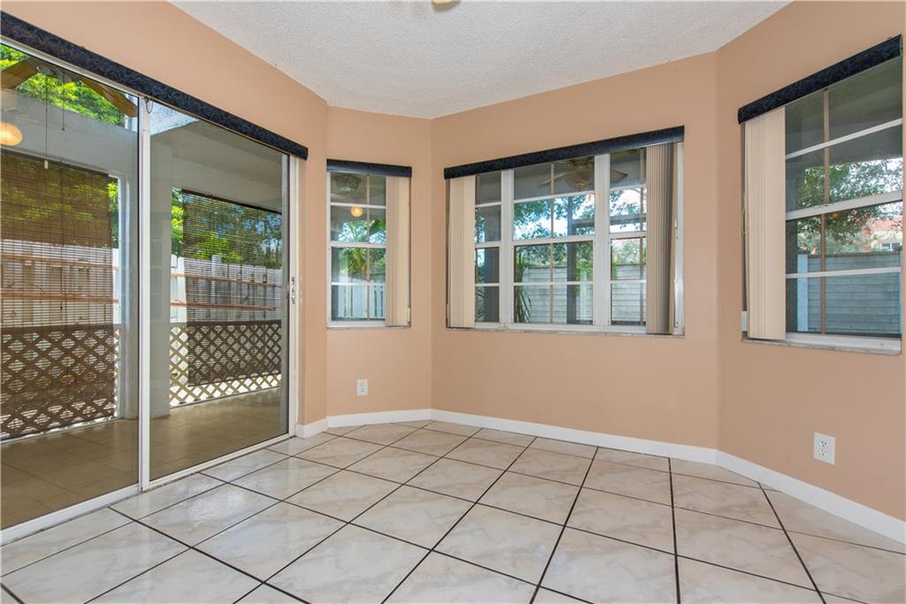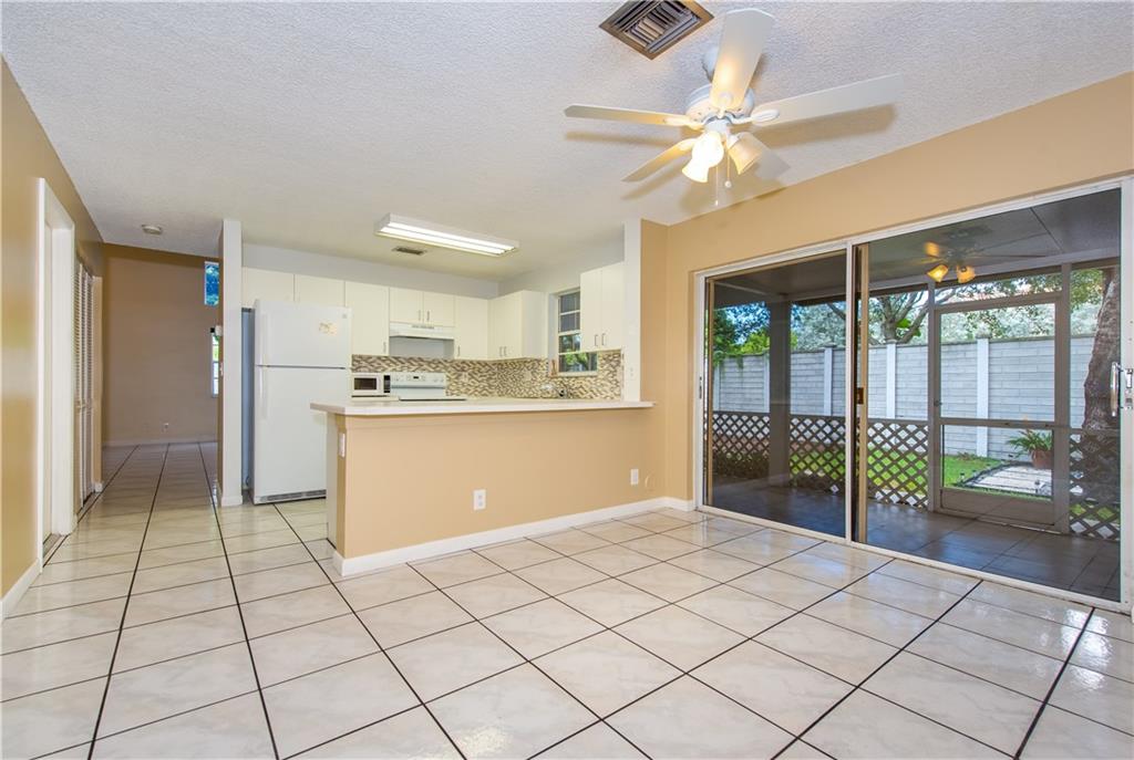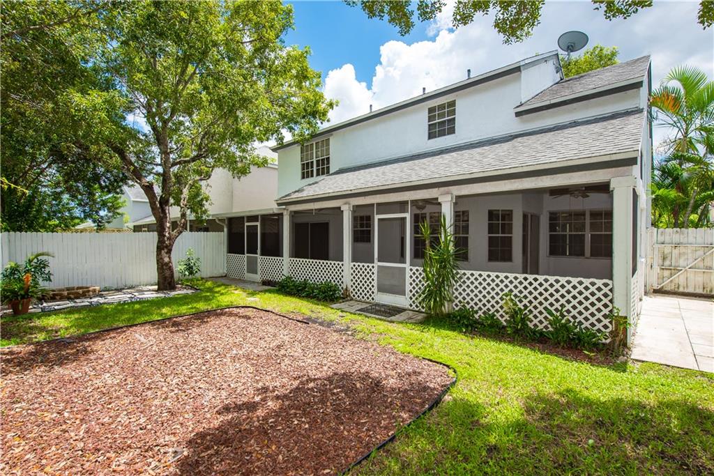 3/2 NATURAL LIGHT, PRIVATE AND TRANQUIL BACKYARD, OVERSIZED SCREENED PATIO, ALL BEDROOMS ON THE SECOND FLOOR, HIGH CEILINGS IN LIVING AREA, FIRST FLOOR TILED, SECOND FLOOR WOOD LAMINATE, KITCHEN WITH UPDATED TILED COUNTER TOP AND BACKSPLASH, SPACIOUS MASTER SUITE WITH WALK-IN CLOSET, LOW HOA DUES, COMMUNITY POOL, PLAYGROUND AND CLUBHOUSE.