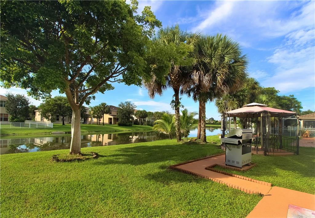 BEAUTIFUL ONE STORY LAKE FRONT CORNER LOT HOME IN A GUARD GATED RESORT STYLE COMMUNITY. HOME HAS TILE FLOORING THROUGHOUT, PAINTED WITH NEUTRAL COLORS. SPLIT BEDROOM PLAN, MASTER FEATURES WALK-IN CLOSET AND LAKE VIEWS. KITCHEN FEATURES HARDWOOD CABINETS & DRAWERS, SNACK BAR & BREAKFAST AREA. TWO CAR GARAGE & LAUNDRY ROOM GREAT FOR EXTRA STORAGE. PEACEFUL BACKYARD OVERLOOKING THE GORGEOUS LAKE, WITH GAZEBO PERFECT FOR ENTERTAINING, SITUATED ON A CORNER LOT.