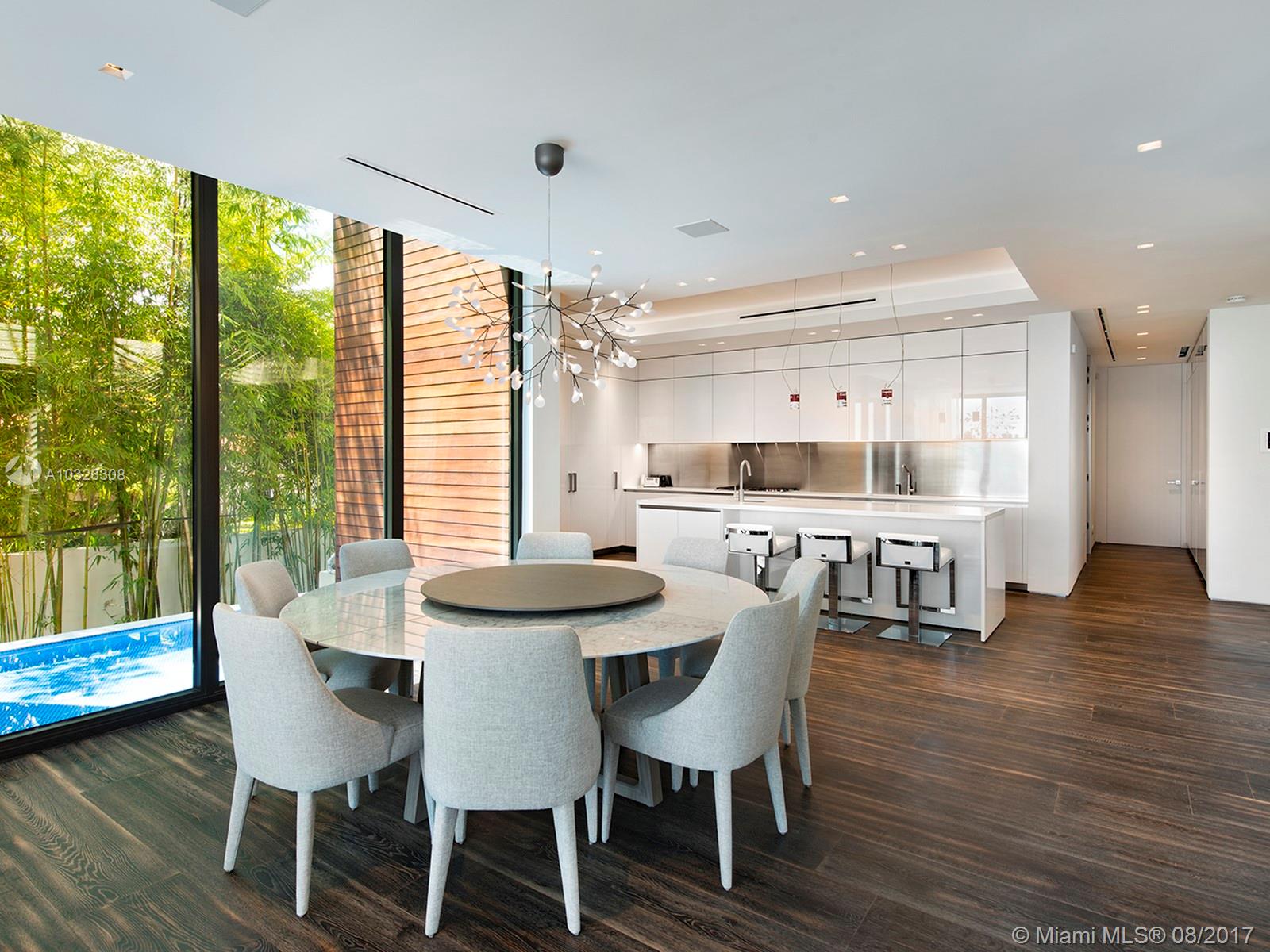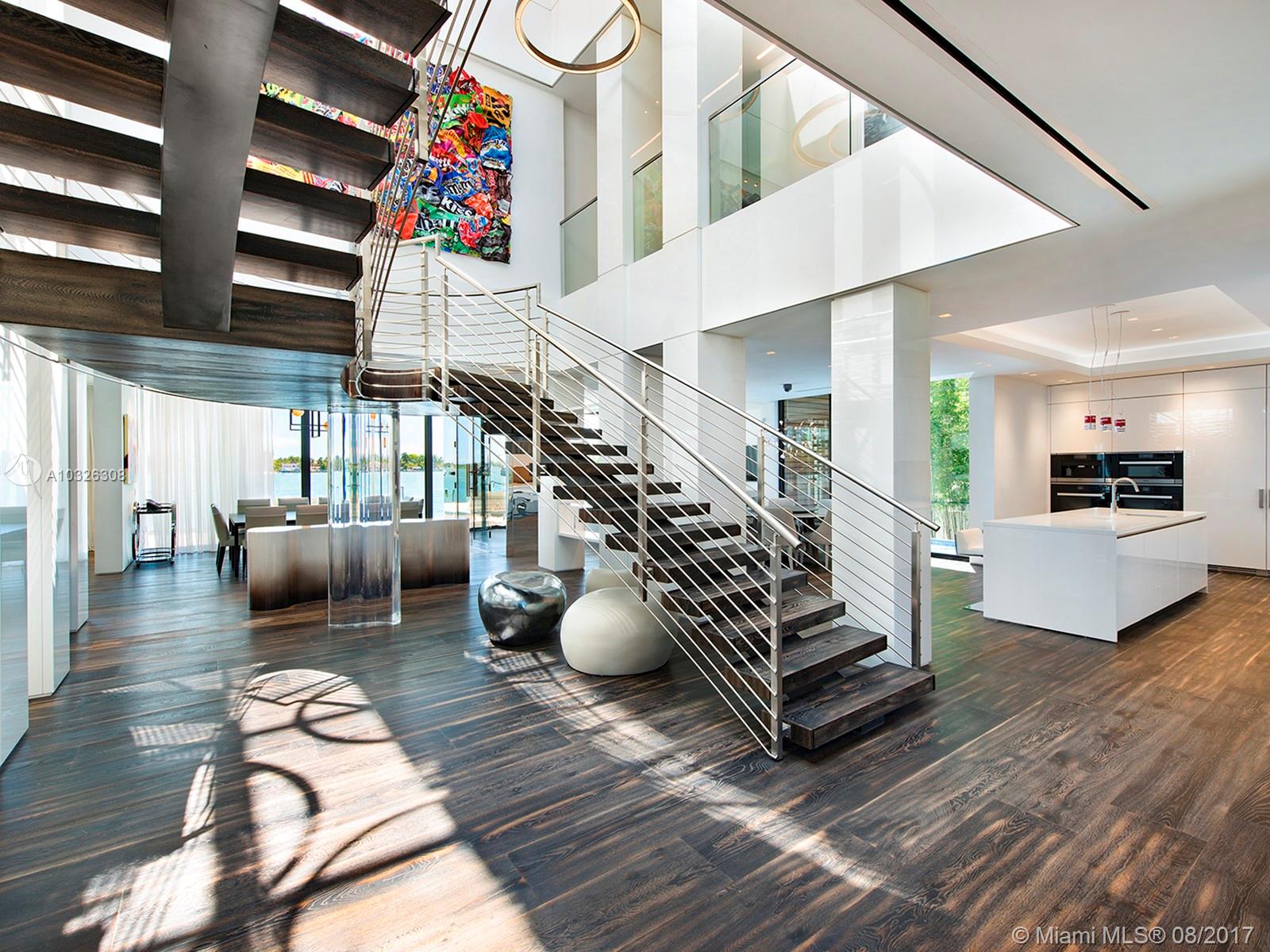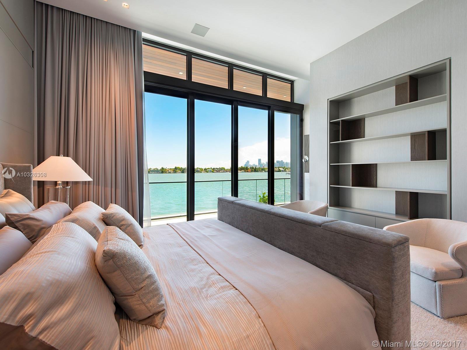 New modern waterfront home on Venetian Islands in Miami Beach, boasts 5 beds, 7.5 baths plus office and spa. Lavish 7,026 sf with the finest finishes. Stunning custom Boffi kitchen touts double Subzero and Miele appliances. Ornare closets, elliptical staircase illuminated by a 300 sf skylight, cerused oak floors throughout, glass elevator, Savant Smart Home with 4 car garage with electric lifts. Venture outdoors and uncover a resort-style backyard with 107 ft of water frontage, no luxury spared.