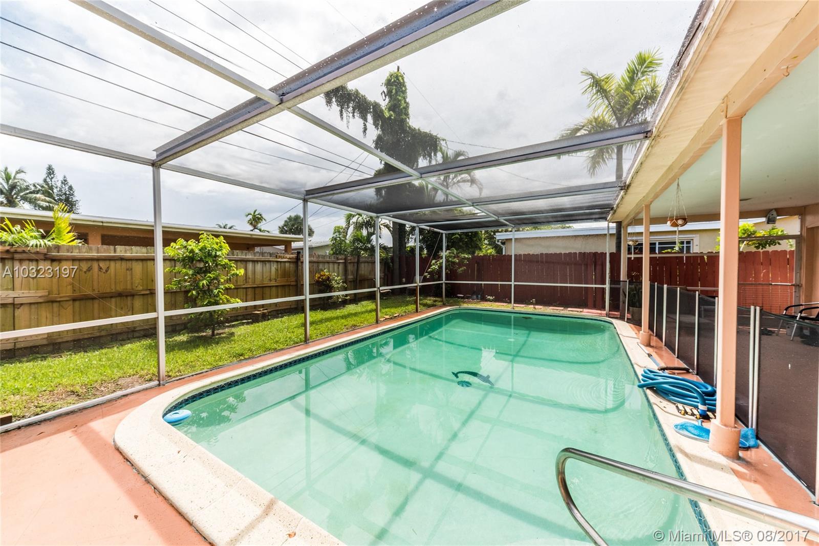 Well maintained and spacious 3 Bed 2 Bath with lot of natural light and a large screened pool. Nice curb appeal home with a large concrete drive way. Fully fence home with a lot of privacy. Beautiful landscapes with mature fruit trees. Property located in the heart of Miramar close to major shopping centers, schools and highways.