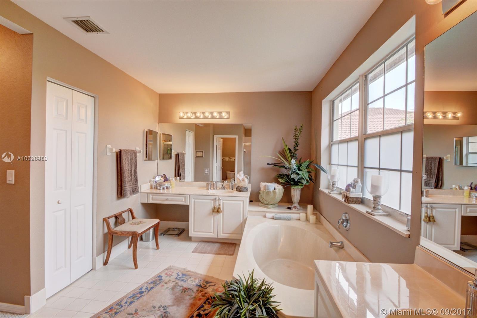 Recently painted exterior, extremely clean interior- this great value in West Miramar with all bedrooms upstairs features over 2840 sqft A/C and a generous Master suite with a tray ceiling, his-her walk in closets, a Master bath with a separate tub-shower and dual vanities PLUS an additional 14x13 sitting room that could be converted into the builder's 5th bedroom option. Formal dining room, separate living-family rooms plus an open kitchen with a breakfast area that overlooks the fenced-in yard with room for a pool. This home is conveniently located near schools, shopping, restaurants, golf and I-75. Its Cul-de-sac lot sits in a 24hr guard gated community with low monthly HOA.