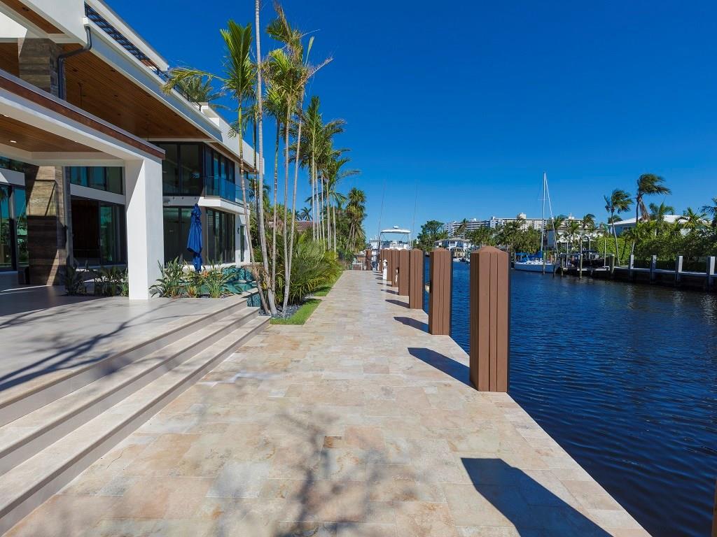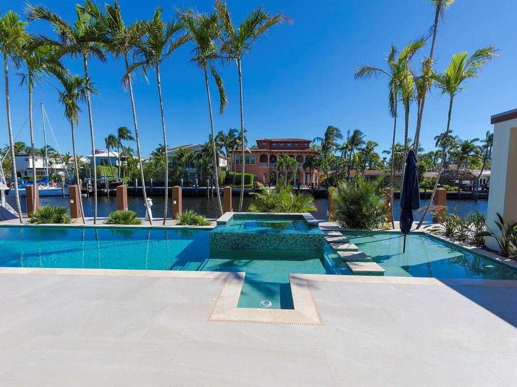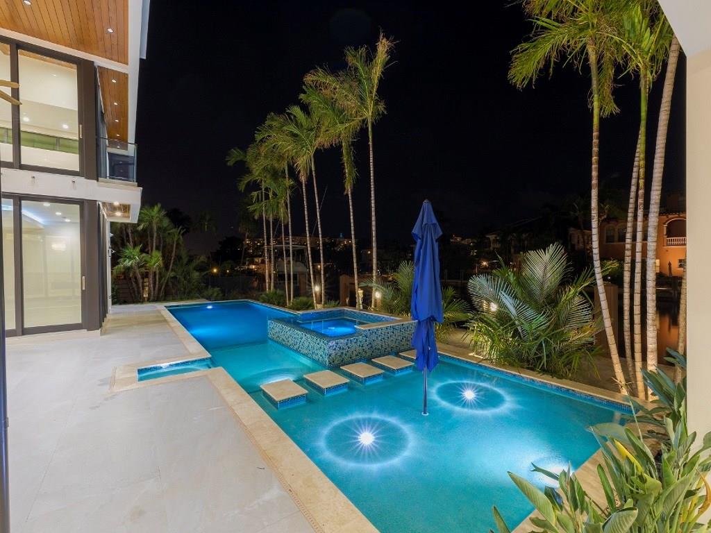 New Modern Masterpiece By Zen (AZD). 3-Story, 8550 sq ft of Luxury & Hi-Technology. Soaring ceilings & open floor plan flows seamlessly to spacious outdoor living area surrounding pool, spa & summer kitchen. All gas kitchen fit for gourmet chef & perfect for entertaining. Master has separate baths & walk-in closets. Third floor entertainment space & balcony with spectacular skyline views. 100' concrete dock berths an 80' yacht on 130' wide canal with quick ocean access. Latest home automation. See video