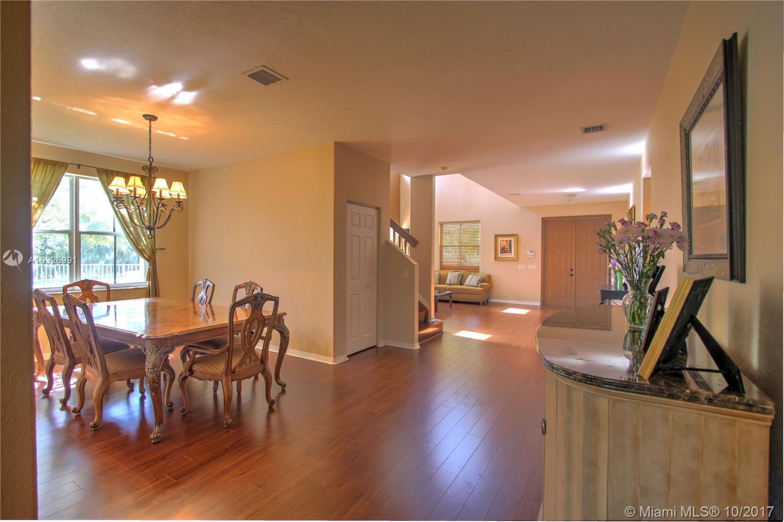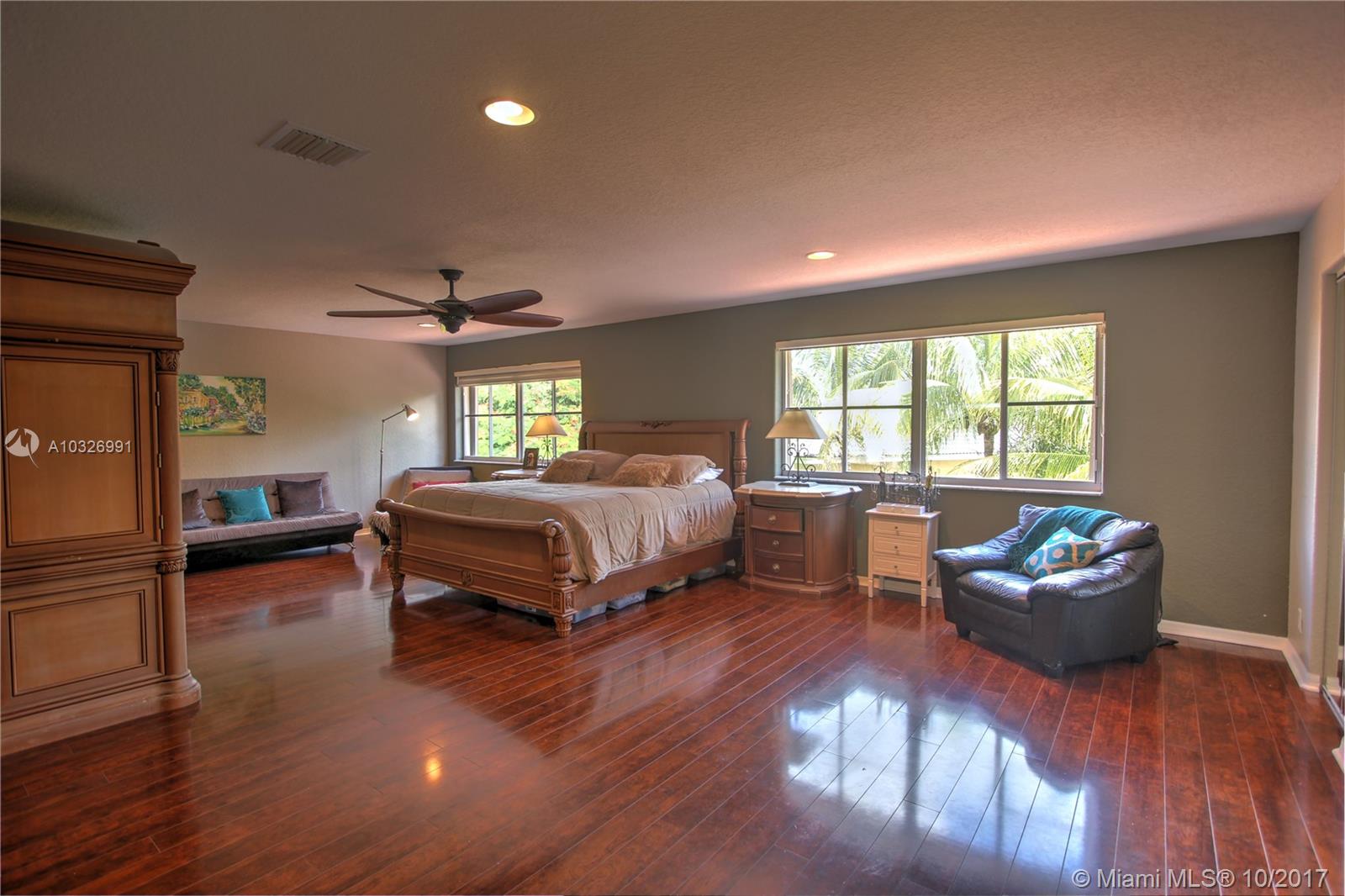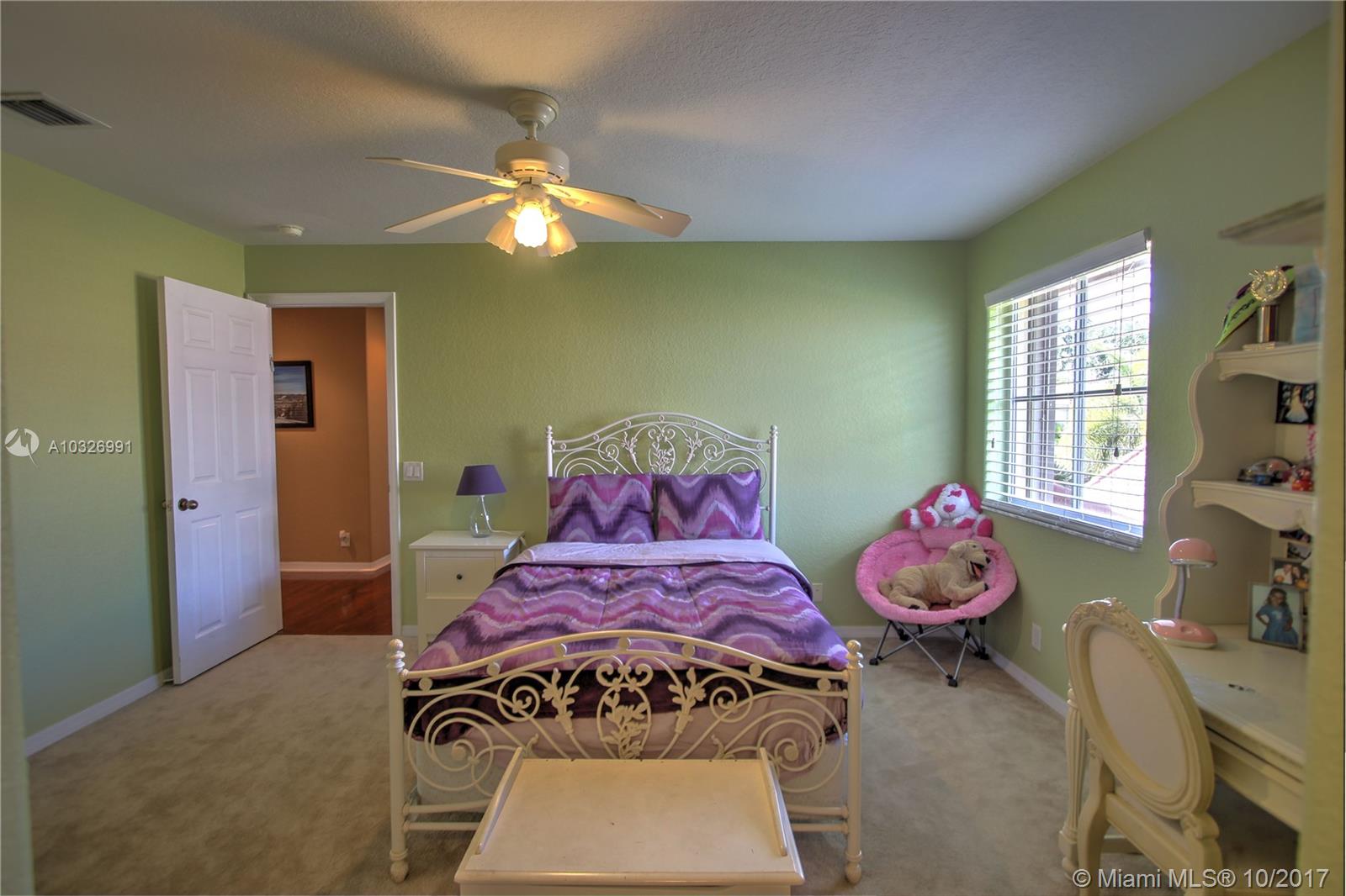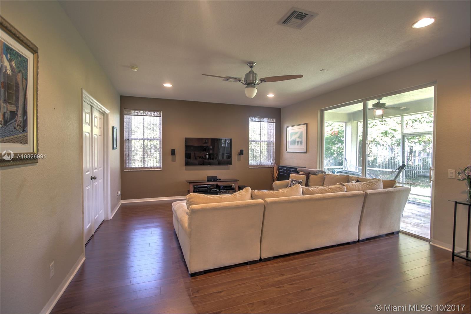 Enjoy living in this beautiful two story home of approx. 5000 total sqft. 6 bedrooms, 4 bathrooms, 42" wood cabinets, granite counter tops, newer top of the line SS appliances, wood floors, high ceilings, large kitchen & family room, lots of closet space, accordion shutters, 2 newer A/C, Cul-De-Sac oversize 10,000+sqft pie shape fenced lot, large covered screed patio with spa, lushly landscaped with plenty room for a pool. Located on a Resort Style gated community with clubhouse, 3 pools, mini-golf, waterpark, soccer and baseball field, basketball court and excellent school district. easy to show!!
