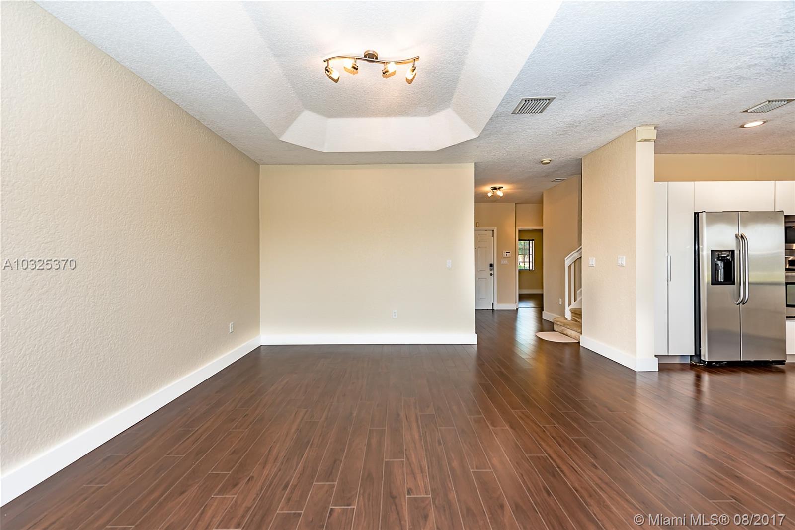 Beautiful home on a corner lot, located at one of the most prestigious communities in Doral. This property is listed as 3 bedrooms + Den, 3 bathrooms. Remodeled Kitchen, Freshly painted, wood laminated on first floor and carpet on second floor, accordion hurricane shutters. Ready to move in. Close to prime schools, shopping and restaurants.