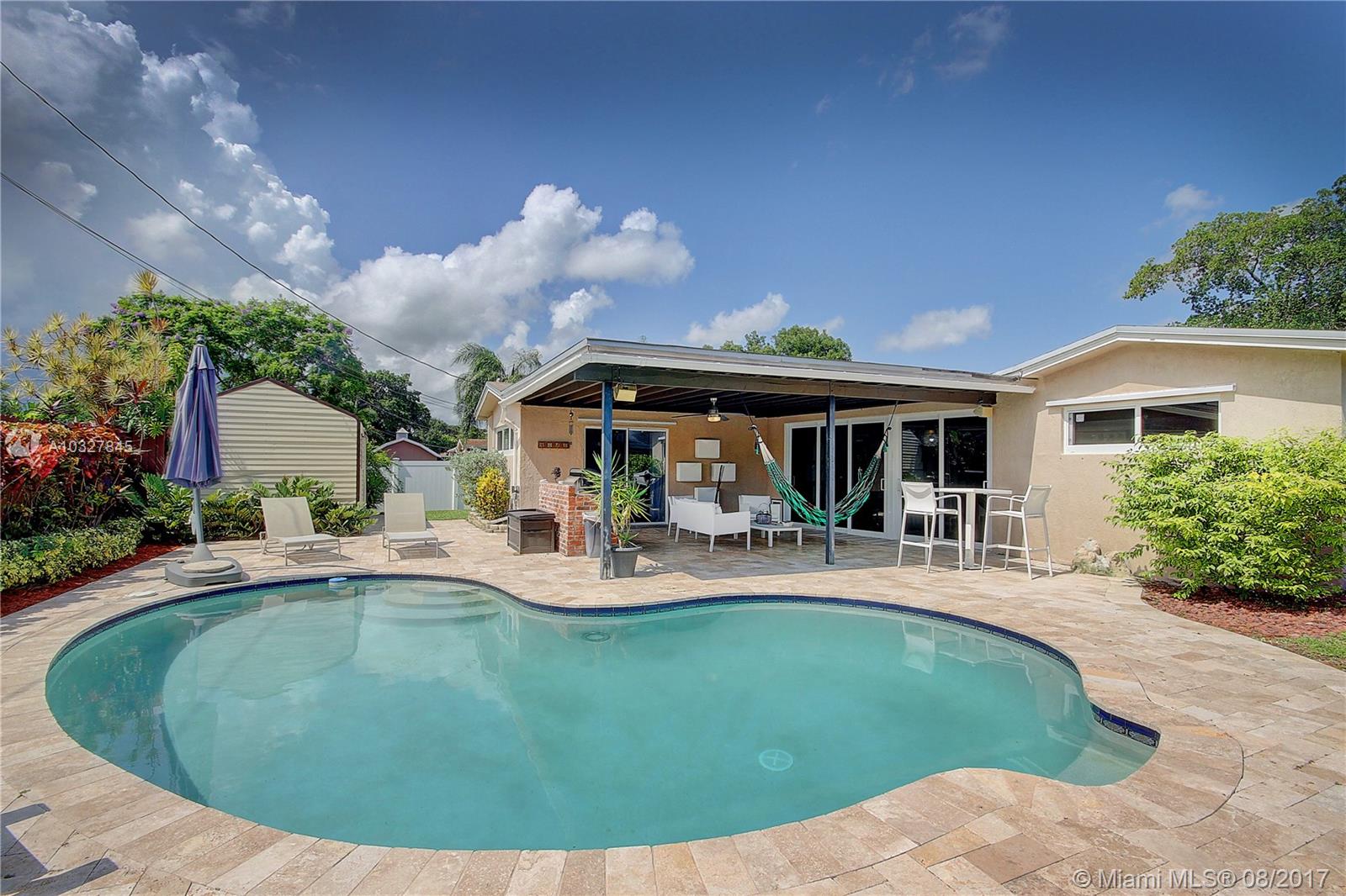 Welcome To This Beautiful Remodeled Home With A Swimming Pool On A Large Fenced Cornet Lot. This Amazing 4 Bedroom / 2 Baths Residence Features High Impact Windows, Bbq Area, Storage Shed, Renovated Kitchen And Bathrooms, Wood Floors Throughout, Windows Treatments And Much More. This Is A Great House To Entertain Your Family And Guests, Both Inside And Outside Anytime During The Year. You Will Love This Home The Moment You Walk In. Come And See It Today. This Gorgeous Property Will Not Last.
