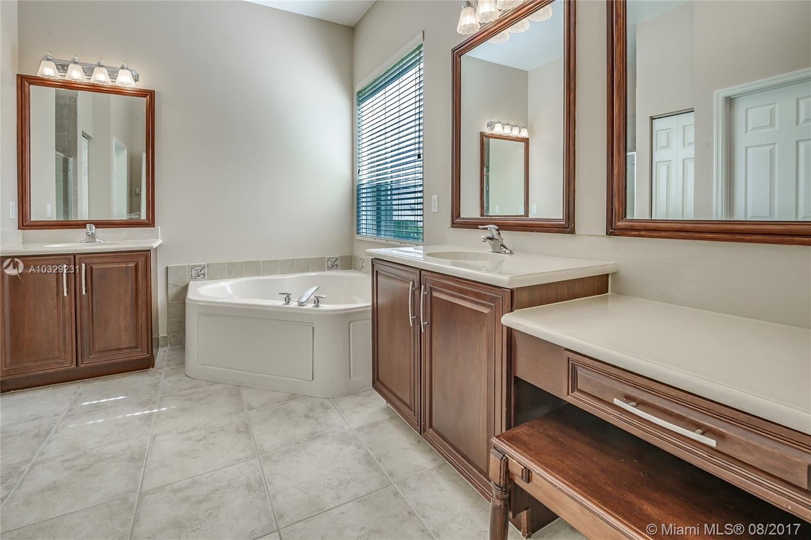 Beautifully maintained, bright & spacious One Story, 3 bedrooms/ 2 full bathrooms with 2 car garages single family home in exclusive gated community Isles at Weston, featuring 2,113 sqft living area. This home has it all, an open floor plan, lots of natural light, High Ceilings, wood laminated flooring throughout, except bathrooms with neutral ceramic tiles. The house features a large master bedroom with spacious master bathroom and jacuzzi tub, his and hers closets. Large Open Kitchen with Cherry woods cabinets, black granite countertops and black appliances. Screened Patio. Isles at Weston Gated Community offers tons of amenities to residents and it's close to great schools, shopping, dinning and highways I-75. Welcome Home!