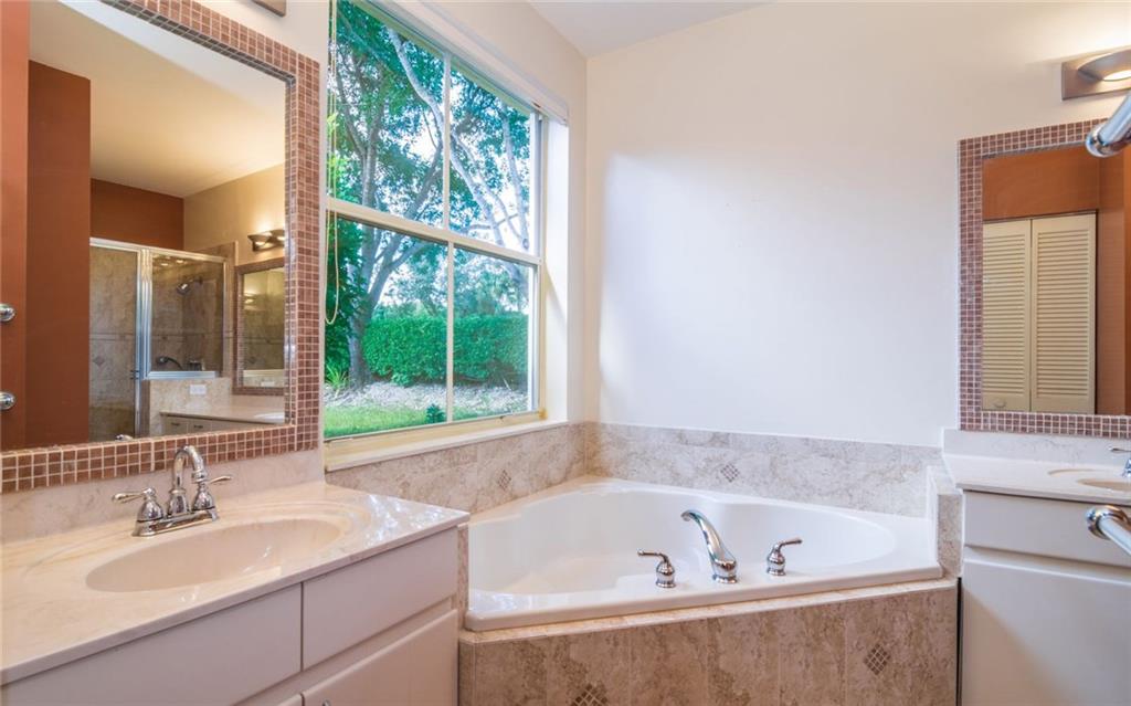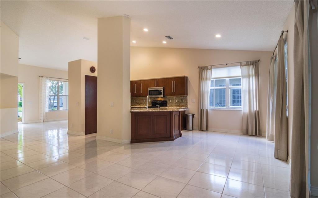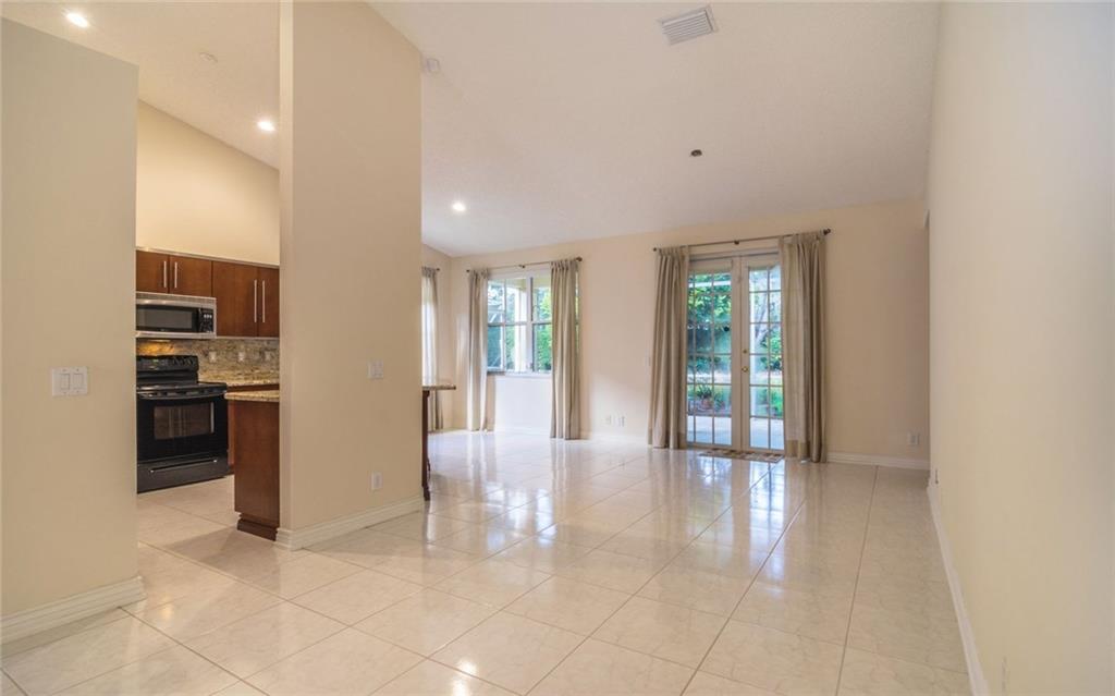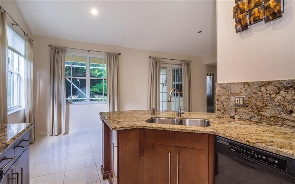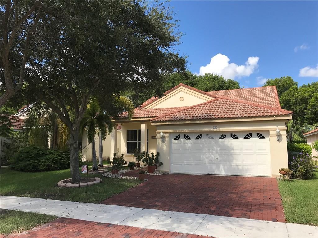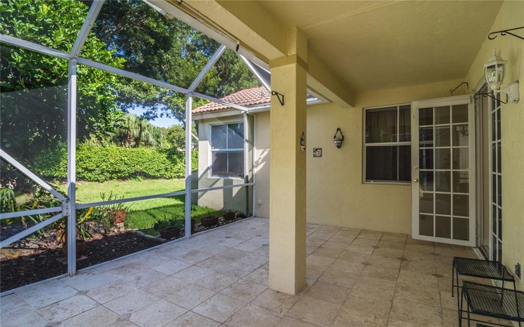 Beautiful home in The Falls. Popular Corinne Model on private berm lot. Open floor plan with extended screened patio, renovated Kitchen with granite tops and newer appliances, 3 bedrooms with 2 full baths, tile floors in living areas, berber carpet in bedrooms, french doors, renovated baths, pavered driveway, walking closets, laundry room and 2 car garage. Very well kept. A must see!