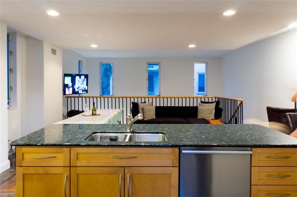 Modern loft style townhouse close to downtownFort Lauderdale. This corner townhome offers a very unique and attractive layout. 3 story design with 2 car garage and family room boasting 17 ft ceilings on the ground floor. 2nd level has the awesome upgraded kitchen with wood cabinets, granite counters and stainless appliances and W/D. 2 br's upstairs with wood beamed vaulted ceilings and updated baths. Refinished concrete floors. NEW AC, new Bosch fridge, dishwasher, new micro and stove. Impact glass