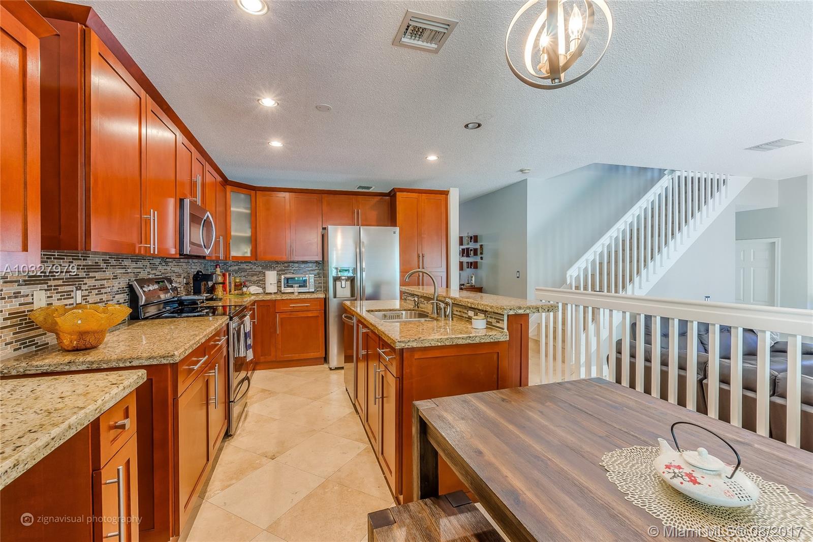 Stunning contemporary 2 story single family home with 4 bedrooms, 2.5 bath, open floor plant, freshly painted gourmet kitchen; with granite counter top and brand new ss appliances with breakfast space, marmel floors throughout the house,completely updated bathrooms,master Bath with double sinks, walk in closet. Plenty space for entertainment in the fenced in back yard. located in a prestigious Rivera island community with one of the most wonderful clubhouses in the area with a lot of amenities to entertain families. With wonderful schools nearby. You must see it.