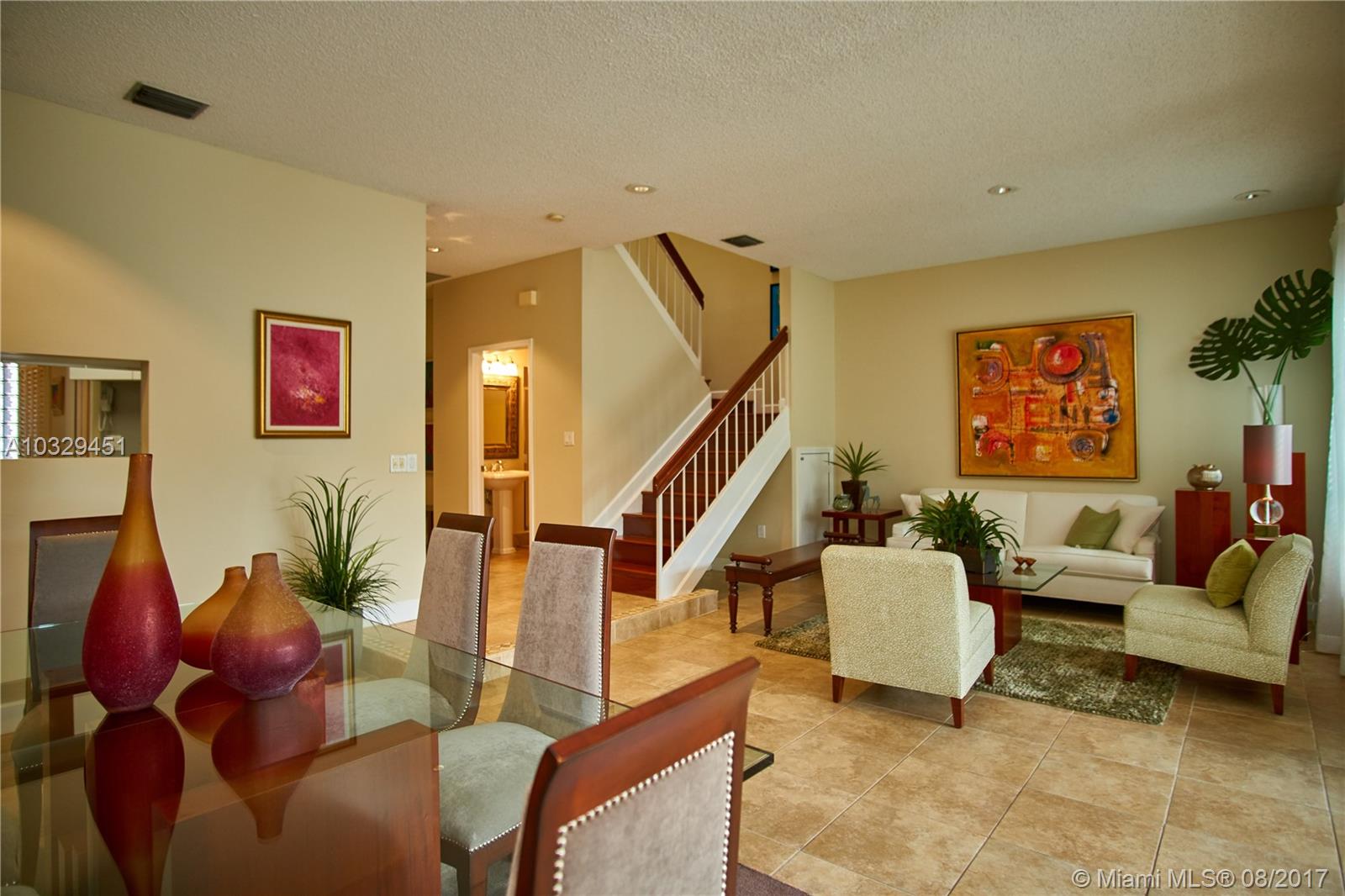 !!ONE OF A KIND IN PINECREST!!! BEAUTIFUL TOWNHOUSE IN THE EXCLUSIVE SUTTON PLACE WALLED NORTH PINECREST PRIVATE COMMUNITY (ONLY 28 UNITS). IMPACT FREE WINDOWS AND DOORS, FOYER LEADS TO A BEAUTIFUL LIVING AND DINING ROOM. LARGE KITCHEN WITH A COZY BREAKFAST NOOK, FLORIDA ROOM WITH A PRIVATE PATIO, TILES IN THE 1ST FLOOR AND BRAZILIAN CHERRY WOOD FLOORS ON 2ND FLOOR, DRAMATIC ILUMINATION AT NIGHT WITH LED SPOT LIGHTING. RIPPLE FOLD CURTAINS IN FLORIDA ROOM AND 2 BEDROOMS WITH BLACK OUT CURTAINS. 1 BED/DEN DOWNSTAIRS WITH A FULL BATH, 3 BEDROOMS/2 BATHS UPSTAIRS. LAUNDRY ROOM, CLOSET GALORE. GREAT COMMUNITY POOL AREA WITH TWO TENNIS COURTS. FURNITURE ALSO FOR SALE***EASY TO SHOW*****A MUST SEE!!!!
